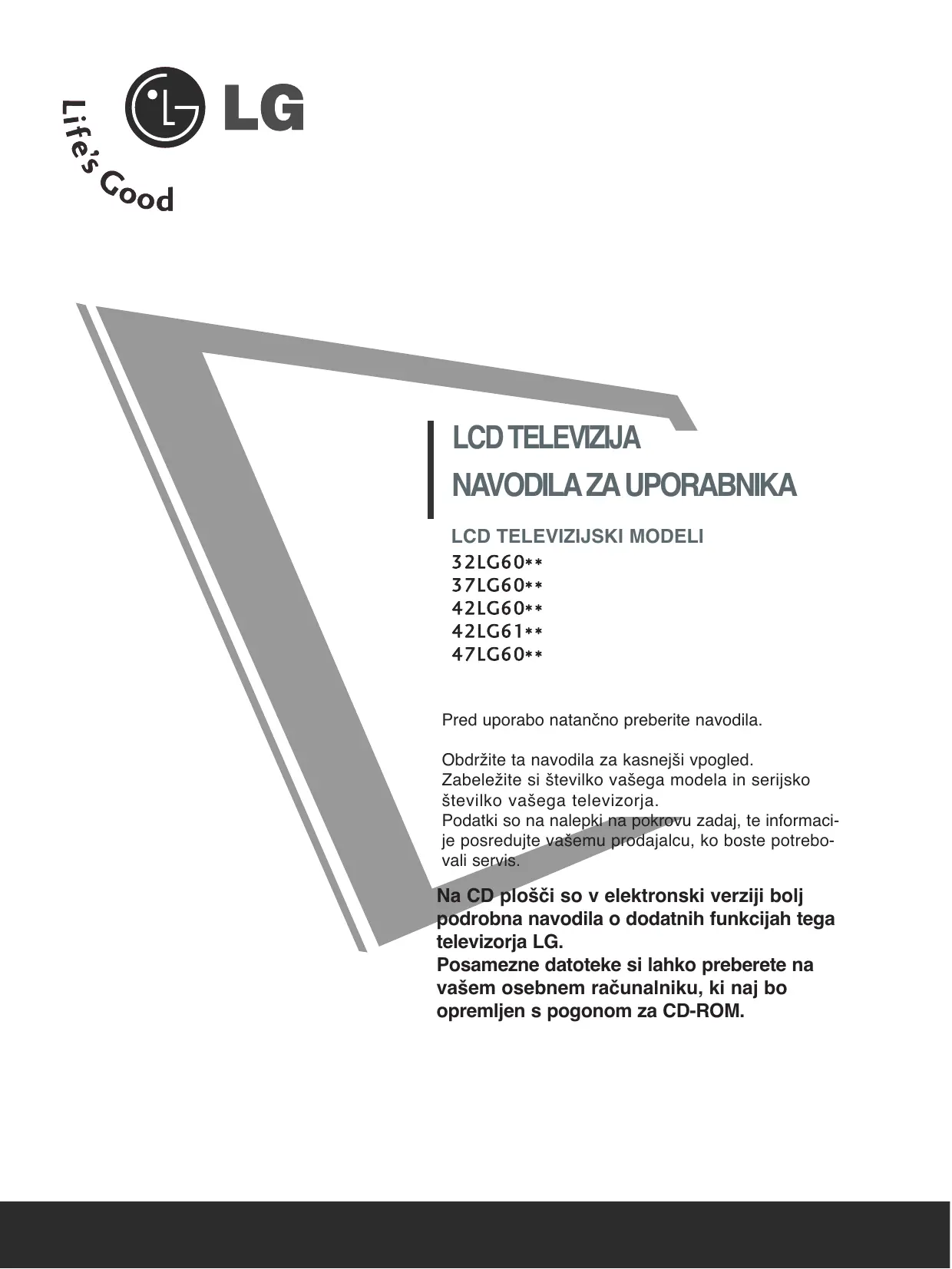Téléchargez la notice de votre Televizija au format PDF gratuitement ! Retrouvez votre notice 426100 - LG et reprennez votre appareil électronique en main. Sur cette page sont publiés tous les documents nécessaires à l'utilisation de votre appareil 426100 de la marque LG.