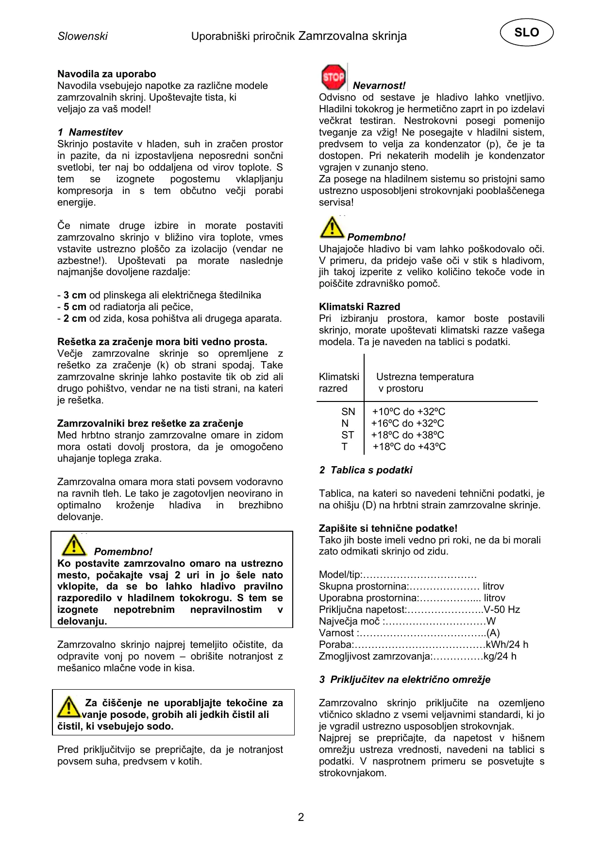 Slowenski Uporabniški priročnik Zamrzovalna skrinja
