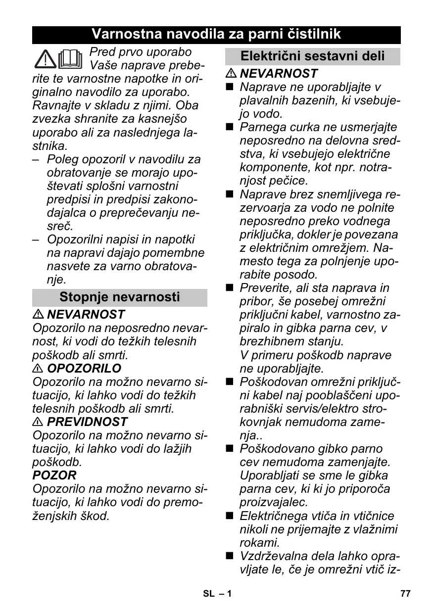 SC2 PREMIUM, SC2, SC2 EASY FIX PREMIUM, SC2 EASY FIX PREMIUM BLANC - Parni čistilec KARCHER - Notice d'utilisation et mode d'emploi gratuit