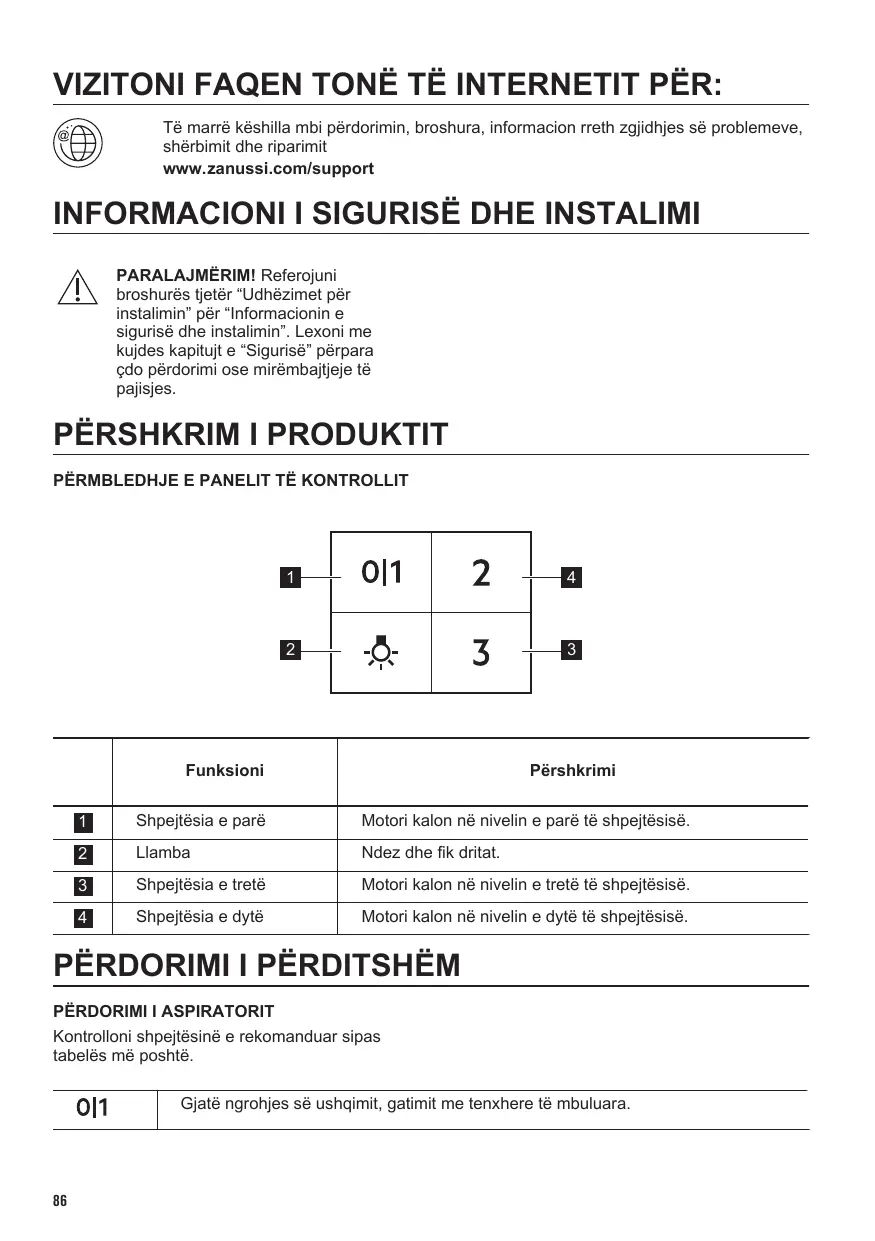VIZITONI FAQEN TONË TË INTERNETIT PËR: Të marrë këshilla mbi përdorimin, broshura, informacion rreth zgjidhjes së problemeve, shërbimit dhe riparimit www.zanussi.com/support