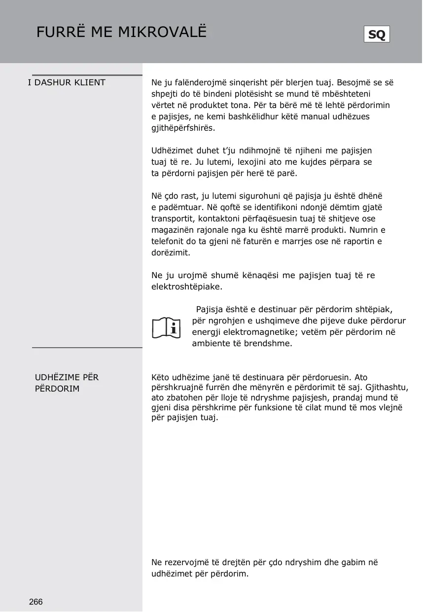 Mé poshté janë renditur, si me té gjitha pajisjet, disa rregulla dhe masa mbrojtése që duhen ndjekur pêr t garantuar performancé té larté nga kjo furré: