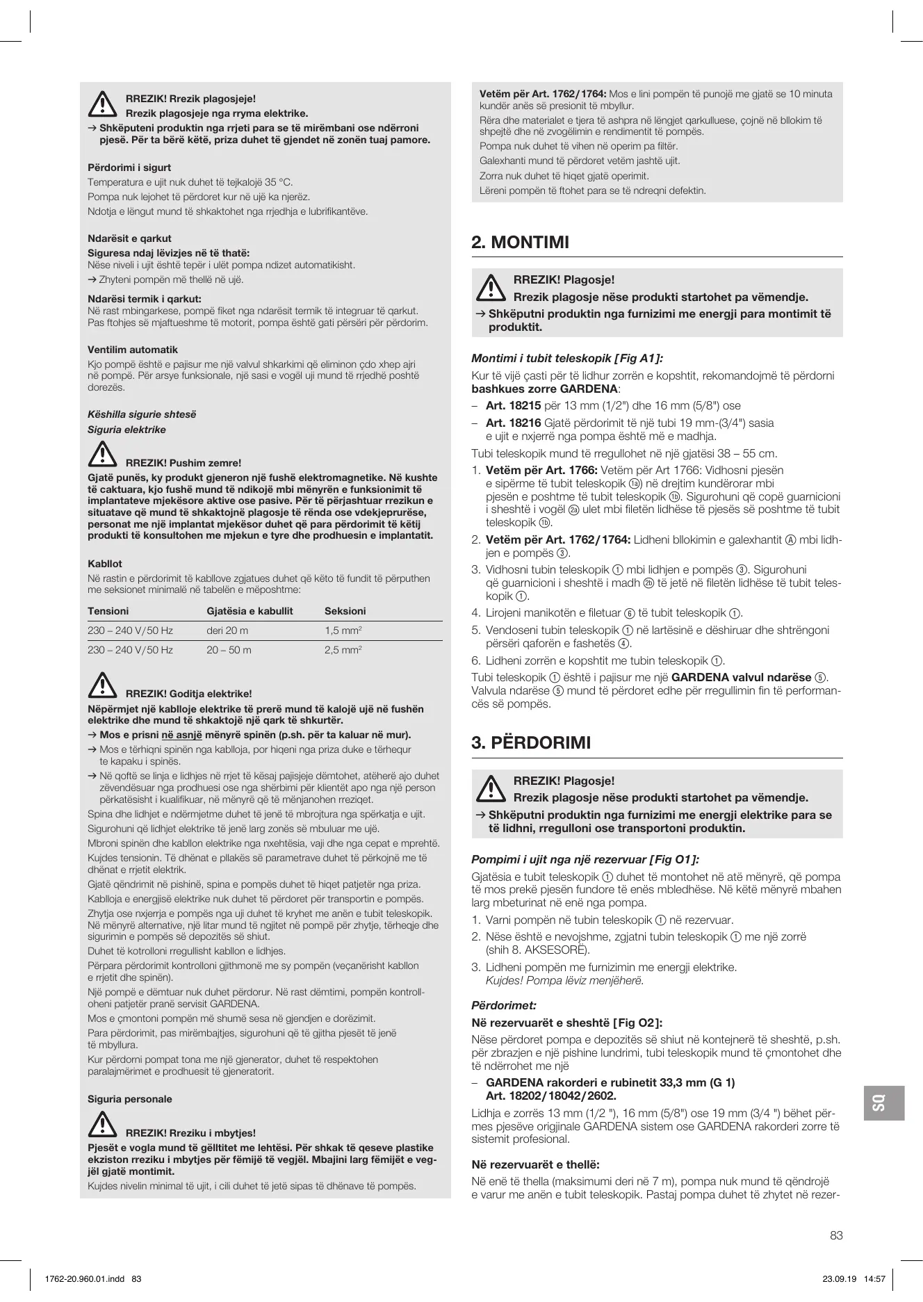 Pompa nuk është e mbrojtur kundër ngricës! Produkti duhet té ruhet në vende jo t& aksesueshme nga fémijèt.