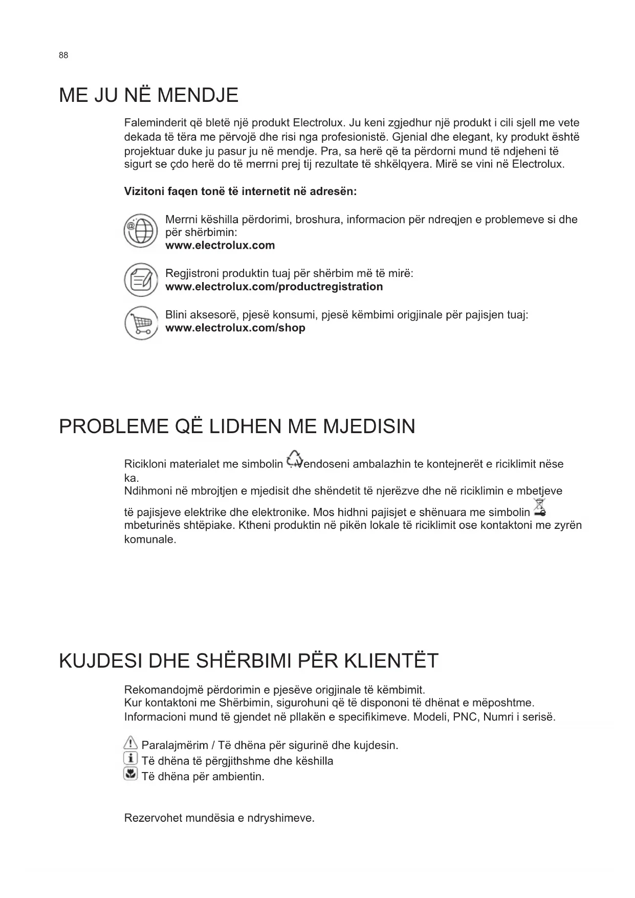 ME JU NË MENDJE Faleminderit që bletë një produkt Electrolux. Ju keni zgjedhur një produkt i cili sjell me vete