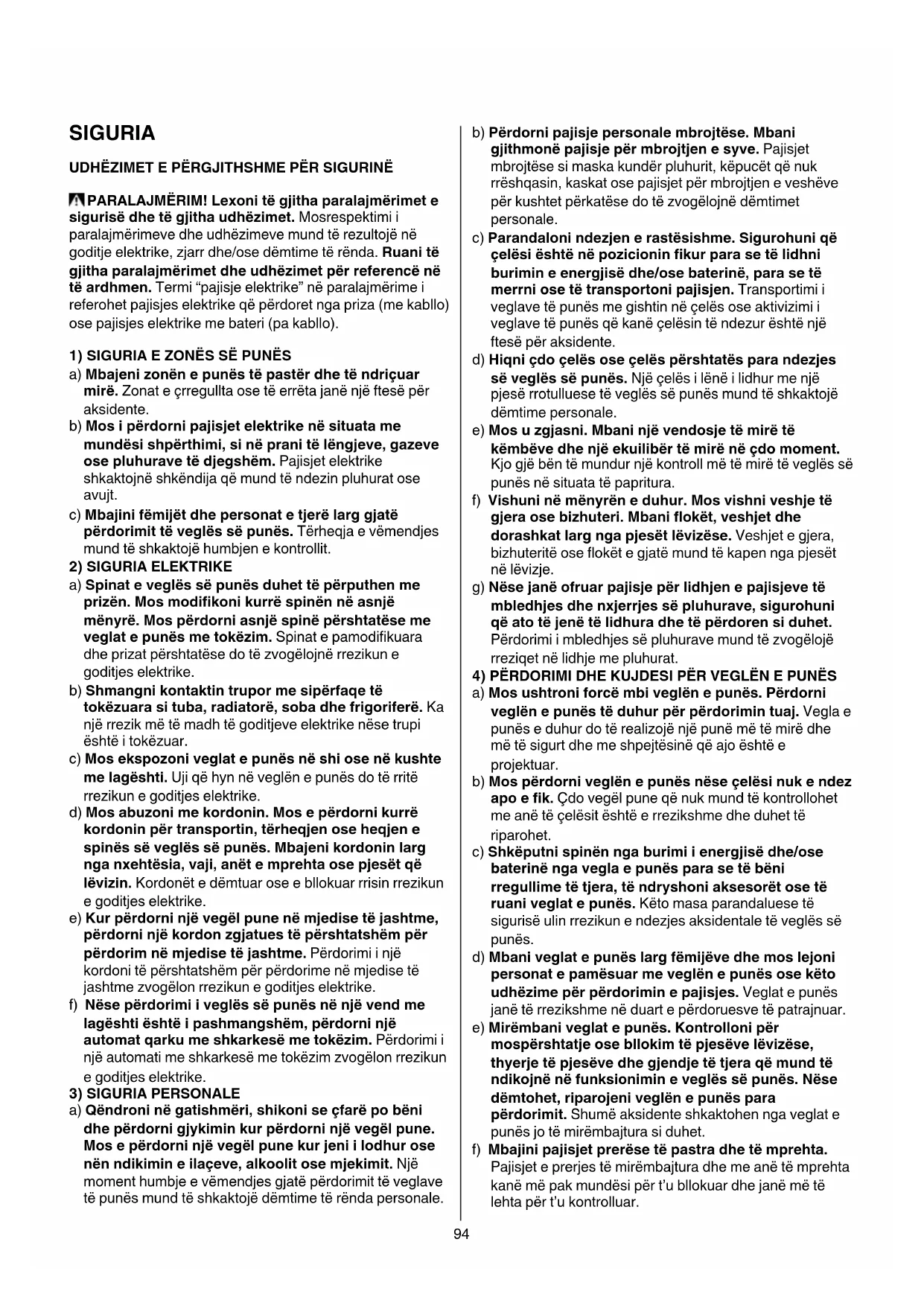 4) PËRDORIMI DHE KUJDESI PËR VEGLËN E PUNËS