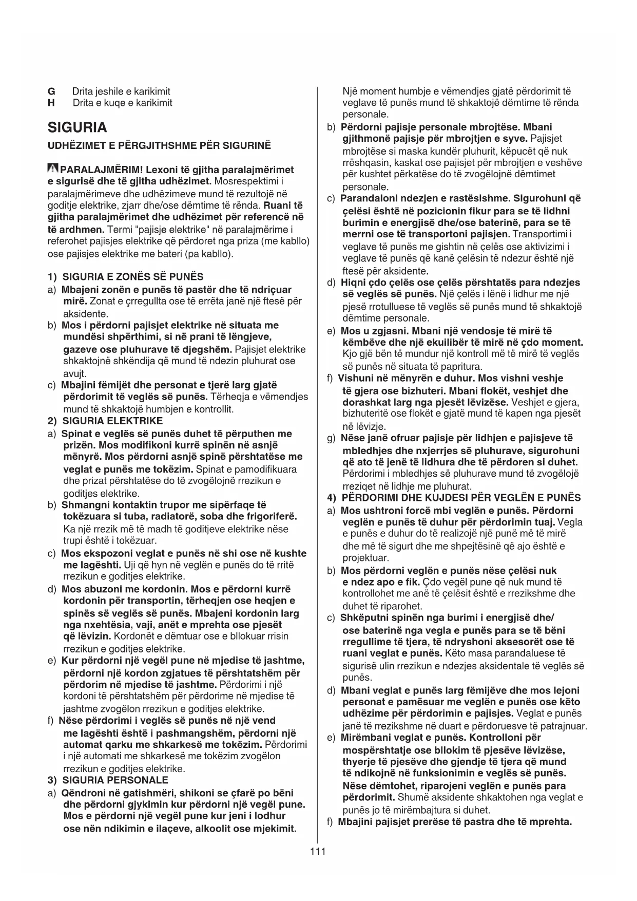 4) PËRDORIMI DHE KUJDESI PËR VEGLËN E PUNËS