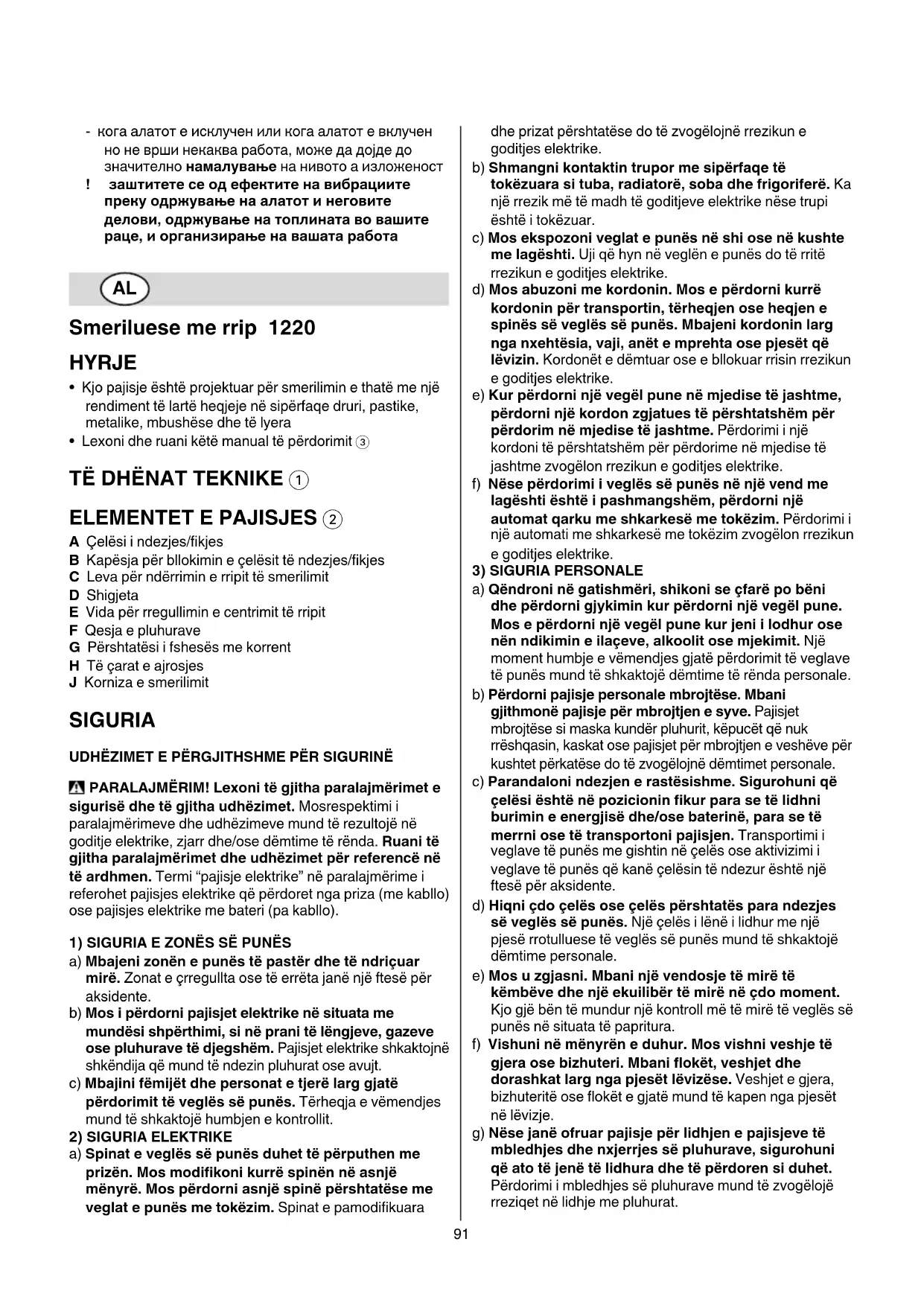 sigurisë dhe të gjitha udhëzimet. Mosrespektimi i