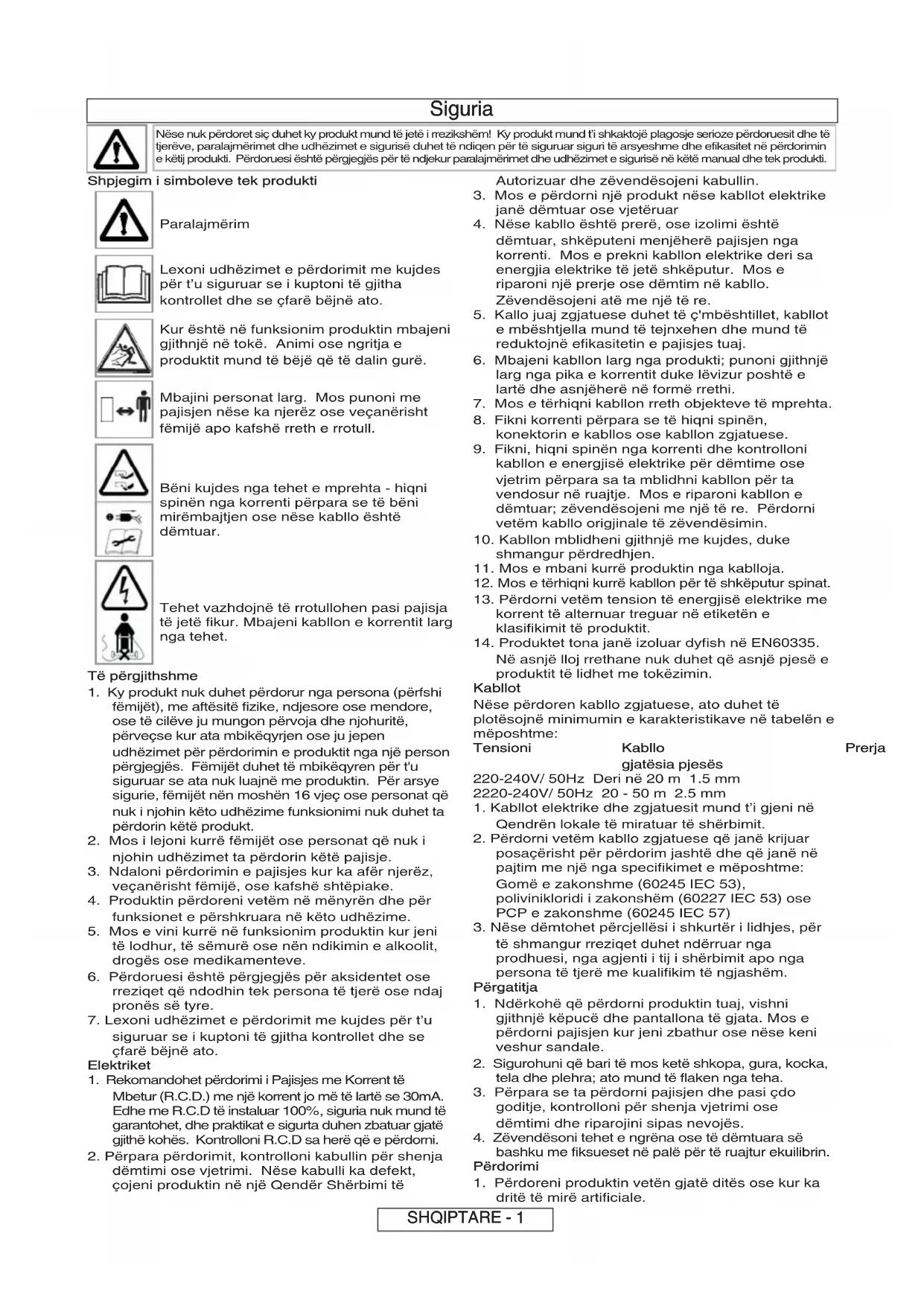 tjerëve, paralajmërimet dhe udhëzimet e sigurisë duhet të ndiqen për të siguruar siguri të arsyeshme dhe efikasitet në përdorimin