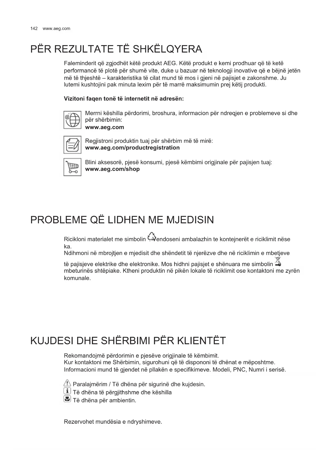 PËR REZULTATE TË SHKËLQYERA Faleminderit që zgjodhët këtë produkt AEG. Këtë produkt e kemi prodhuar që të ketë