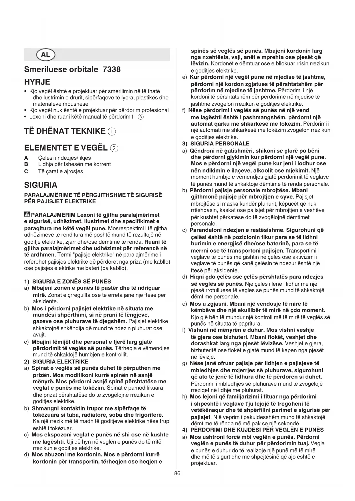 UDHËZIMET PËR SIGURINË PËR SMERILUESET TË PËRGJITHSHME