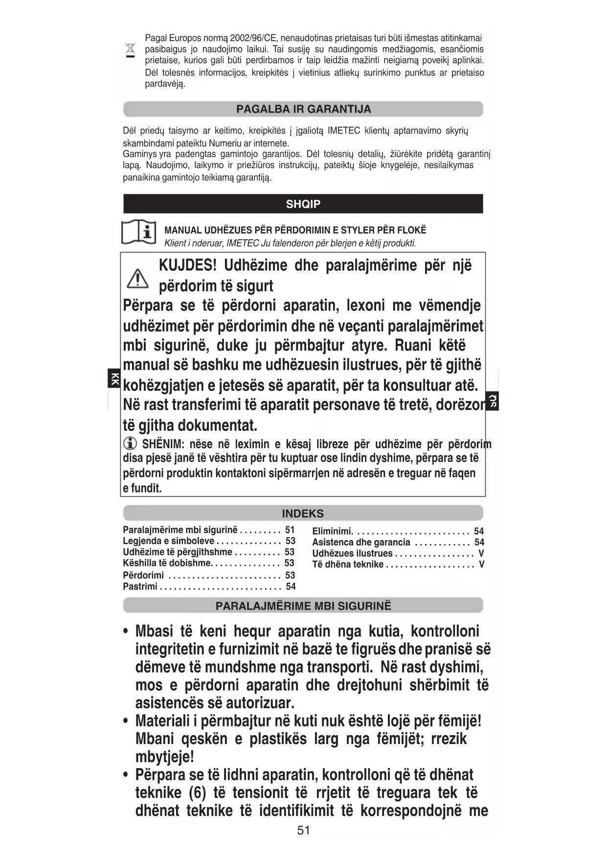 INDEKS Paralajmërime mbi sigurinë . . . . . . . . . 51