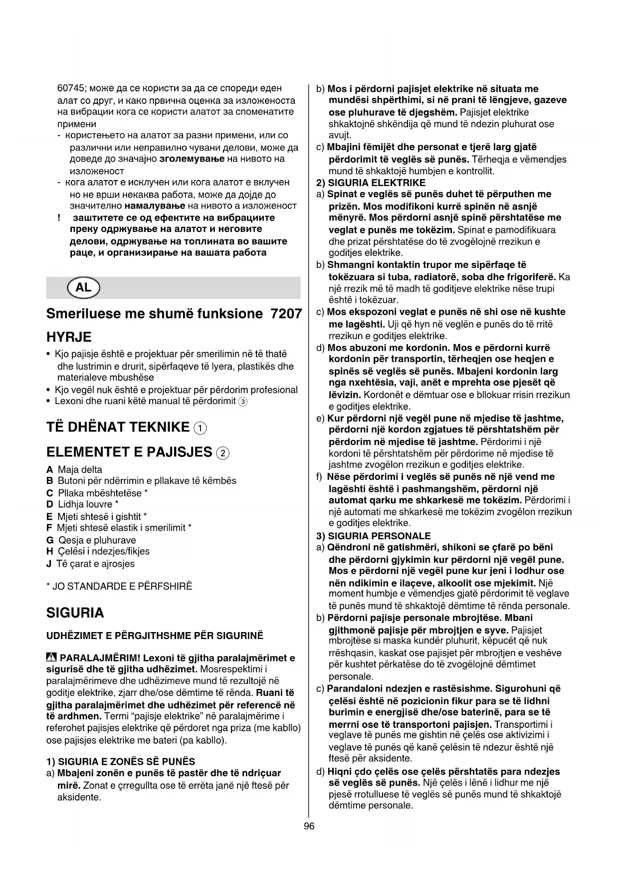 • E matur në përputhje me EN 60745, niveli i trysnisë së