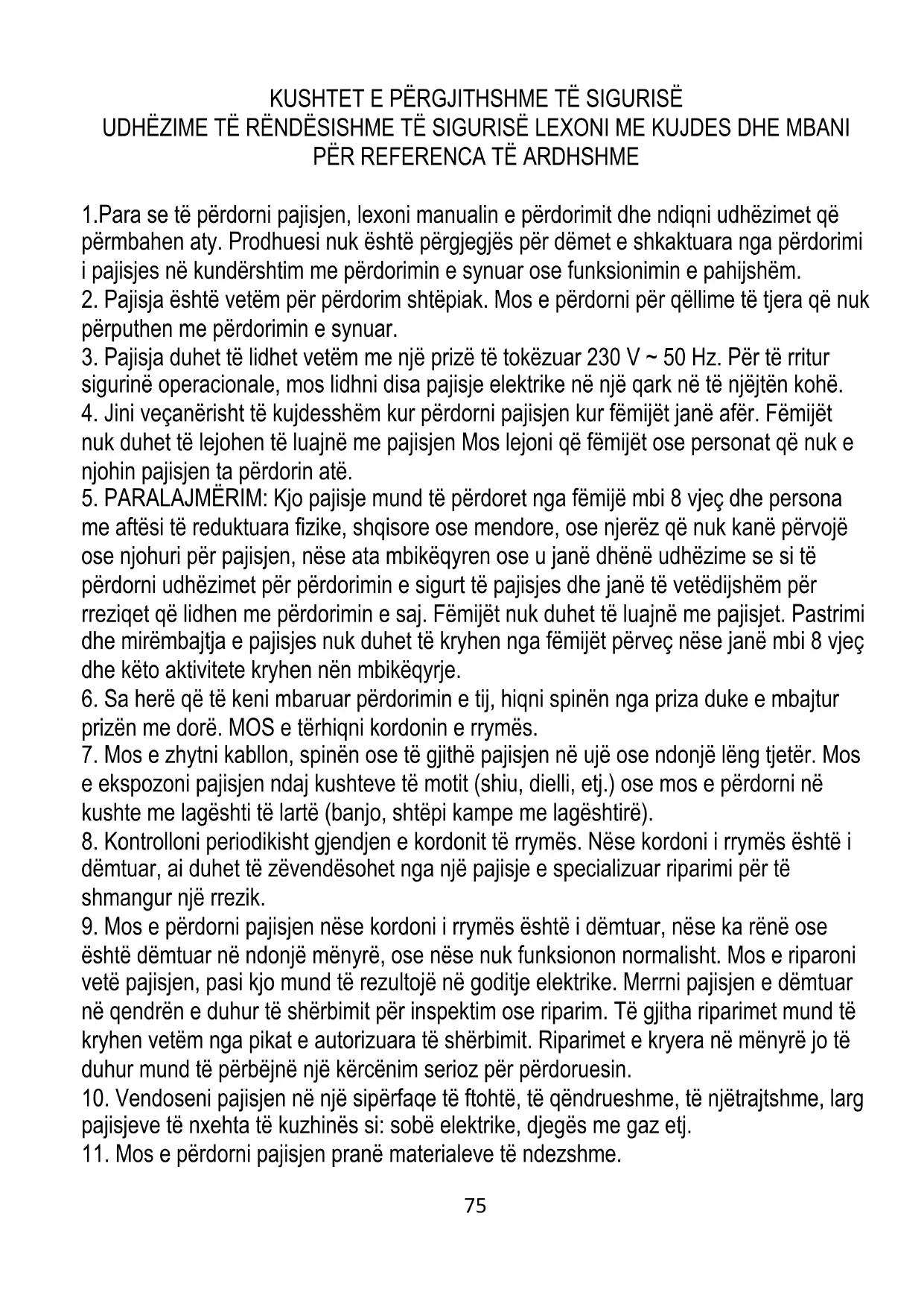 11. Mos e përdorni pajisjen pranë materialeve të ndezshme.76