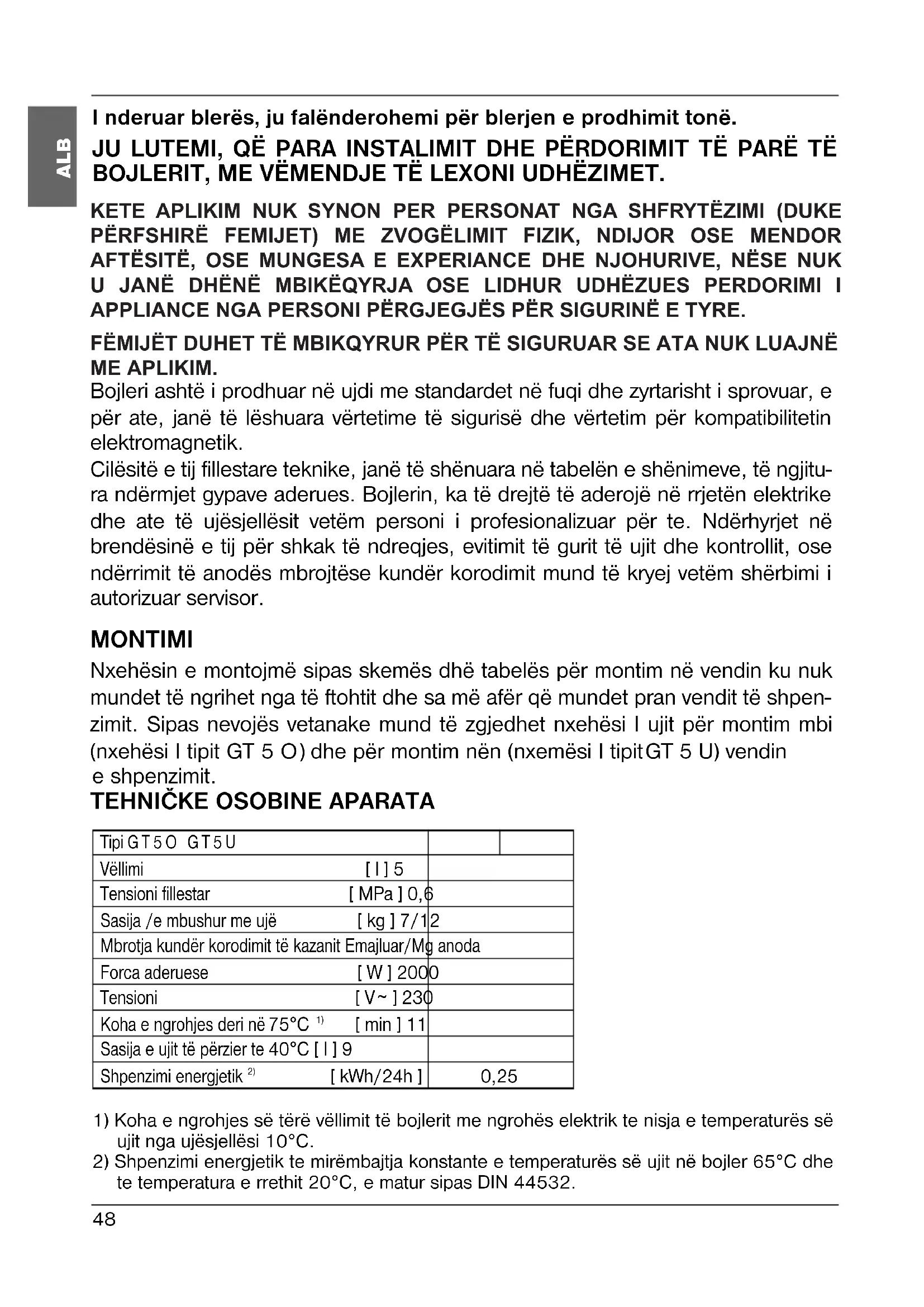 [ kWh/24h ] 0,25 TIKI Navodila_ GT KODA 627 JUL04 copy.qxd 25.8.2004 9:09 Page 48 (nxehësi I tipit GT 5 O dhe për montim nën (nxemësi I tipit GT 5 U) vendin e shpenzimit.