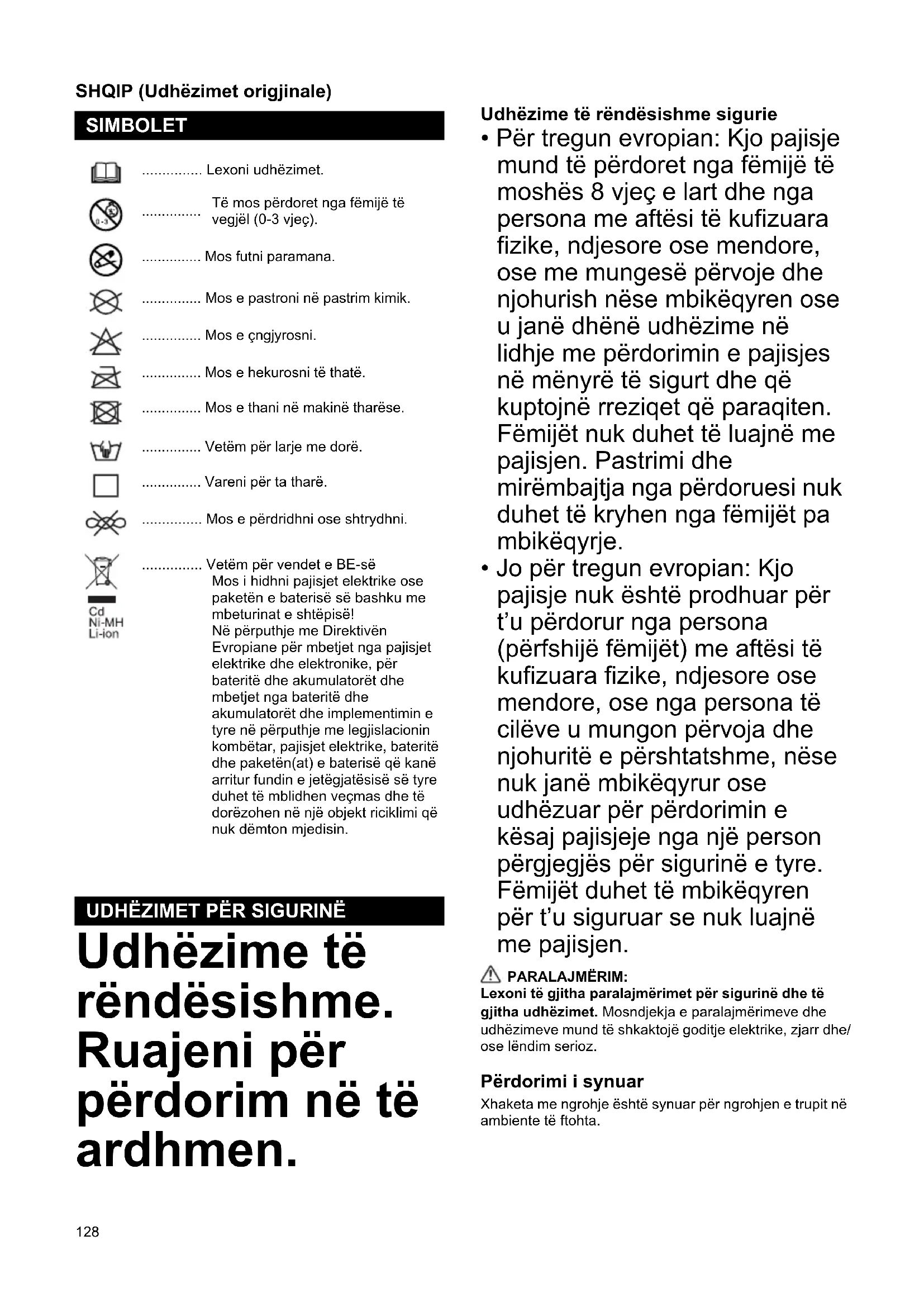 UDHËZIMET PËR SIGURINË129