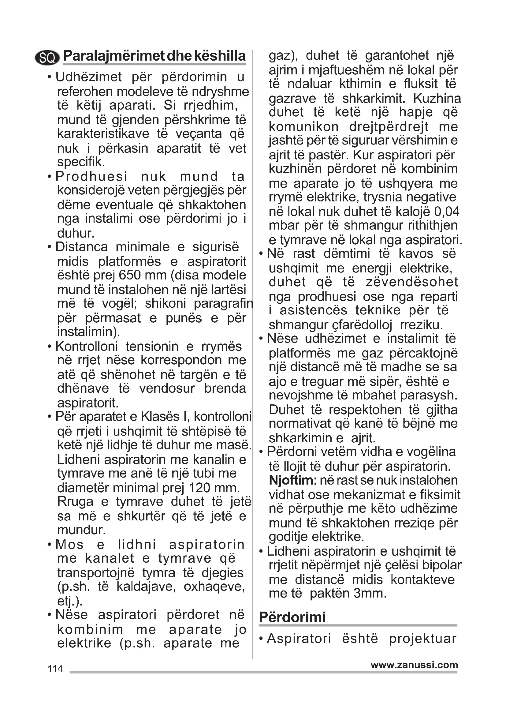 - Aspiratori është projektuar SQ115 www.zanussi.com ekskluzivisht për përdorim shtëpiak me qëllim eliminimin e erërave nga kuzhina.