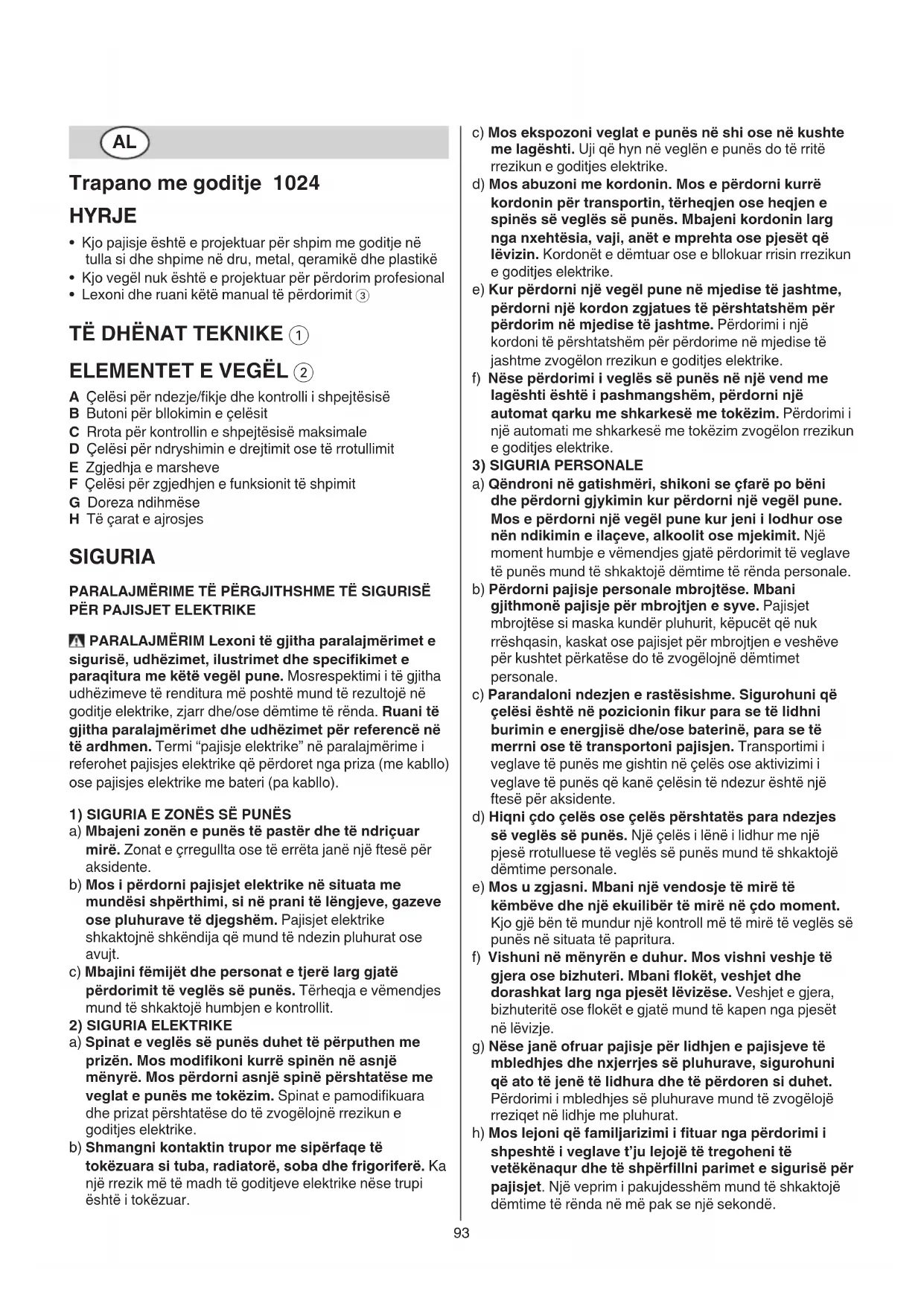 h) Mos lejoni që familjarizimi i fituar nga pērdorimi i shpeshtë i veglave t'ju lejoë tê tregoheni tê vetëkënaqur dhe tê shperfillni parimet e sigurise pãjisjet. Një veprim i pakujdesshem mund tʃ shkaktojë demtime t'renda në më pak se një sekonde.