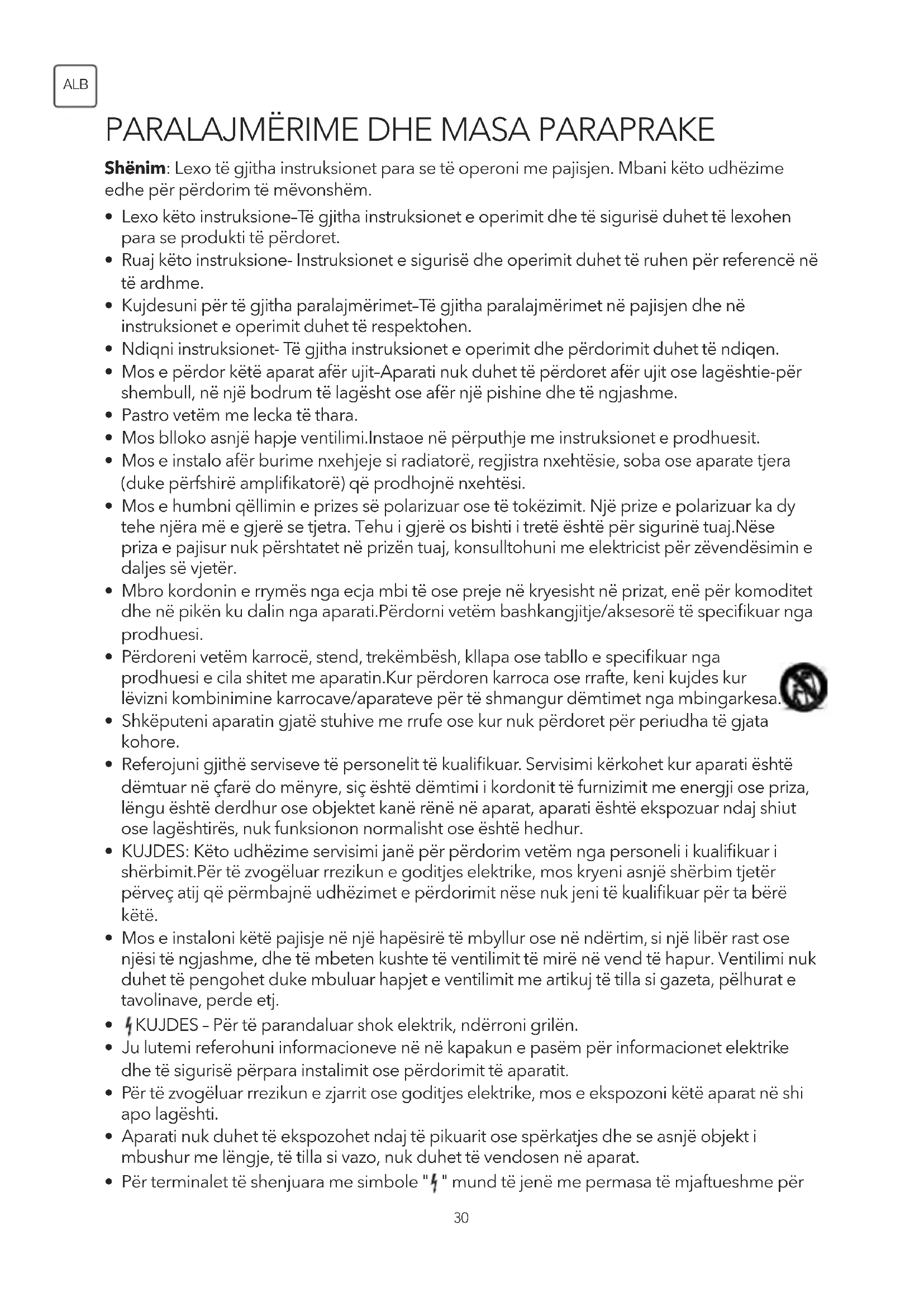 - Ruaj këto instruksione- Instruksionet e sigurisë dhe operimit duhet të ruhen për referencë në të ardhme.