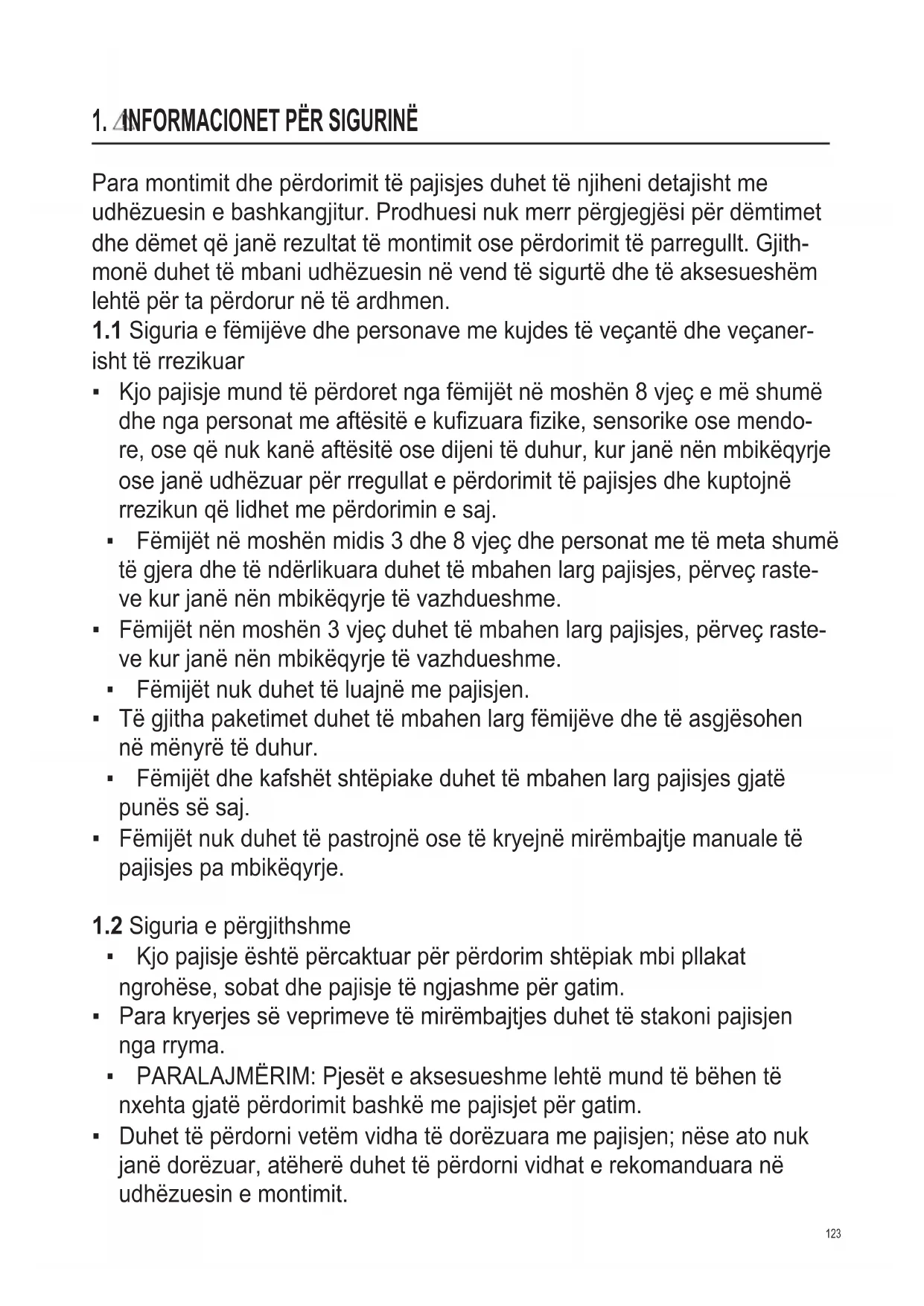 - Fëmijët nën moshën 3 vjeç duhet të mbahen larg pajisjes, përveç raste- ve kur janë nën mbikëqyrje të vazhdueshme.