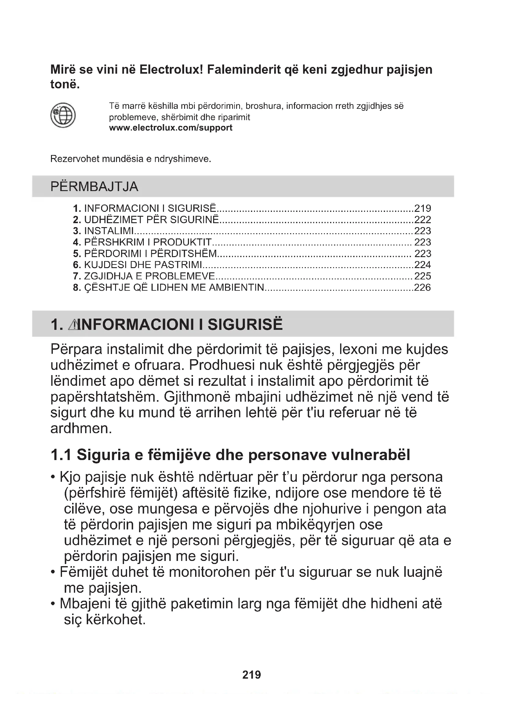 - Mbajeni të gjithë paketimin larg nga fëmijët dhe hidheni atë siç kërkohet. 219• Mbajini fëmijët dhe kafshët shtëpiake larg pajisjes gjatë kohës që ajo është në punë.