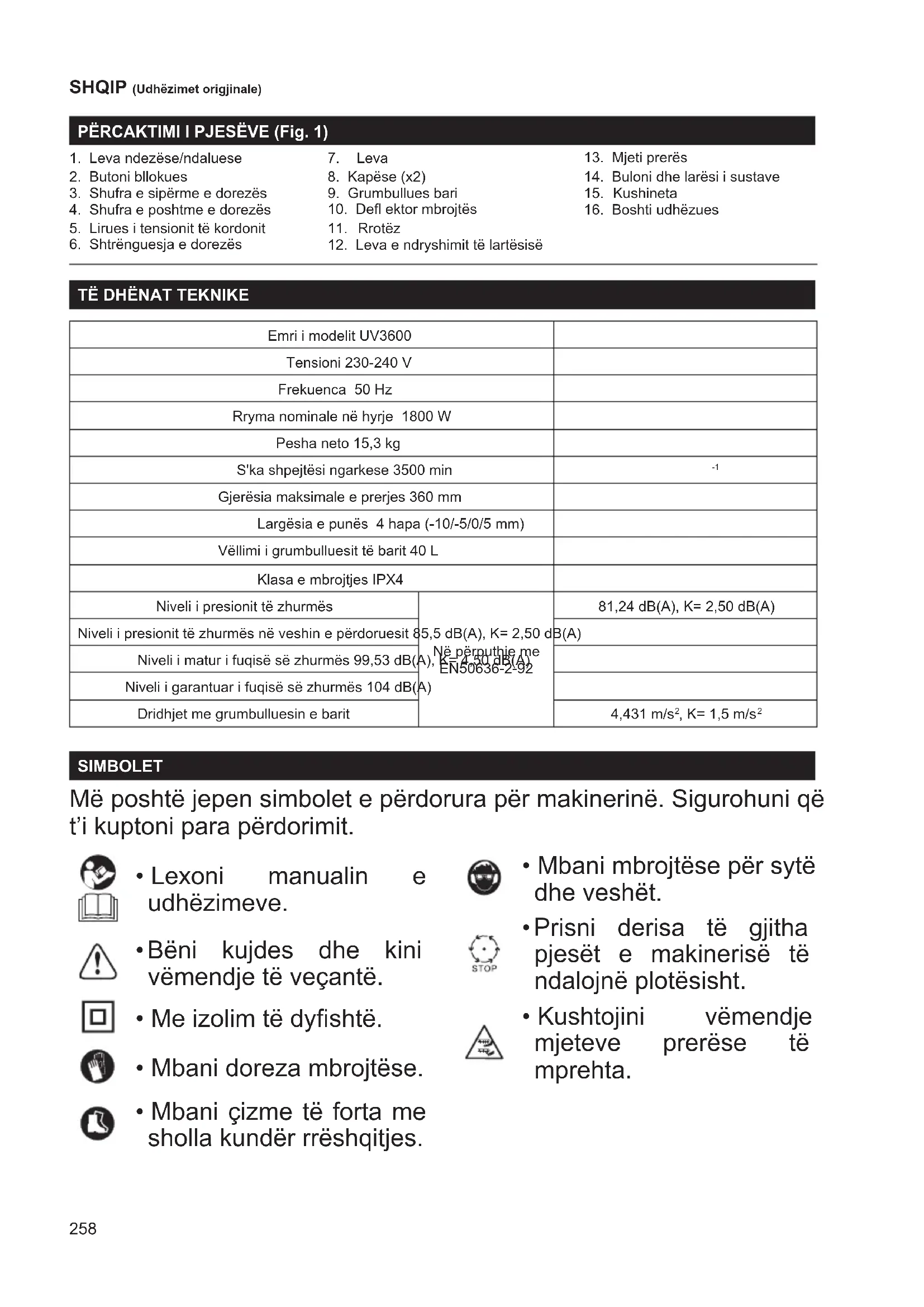 - Kushtojini vëmendje mjeteve prerëse të mprehta. SHQIP (Udhëzimet origjinale) PËRCAKTIMI I PJESËVE (Fig. 1)259
