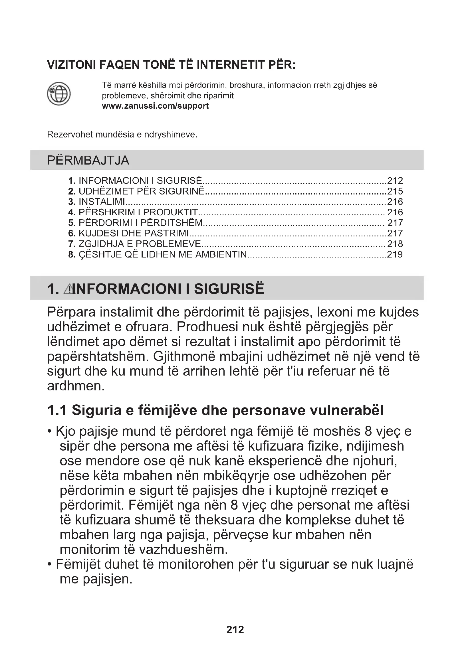 - Kjo pajisje mund të përdoret nga fëmijë të moshës 8 vjeç e sipër dhe persona me aftësi të kufizuara fizike, ndijimesh ose mendore ose që nuk kanë eksperiencë dhe njohuri, nëse këta mbahen nën mbikëqyrje ose udhëzohen për përdorimin e sigurt të pajisjes dhe i kuptojnë rreziqet e përdorimit. Fëmijët nga nën 8 vjeç dhe personat me aftësi të kufizuara shumë të theksuara dhe komplekse duhet të mbahen larg nga pajisja, përveçse kur mbahen nën monitorim të vazhdueshëm.