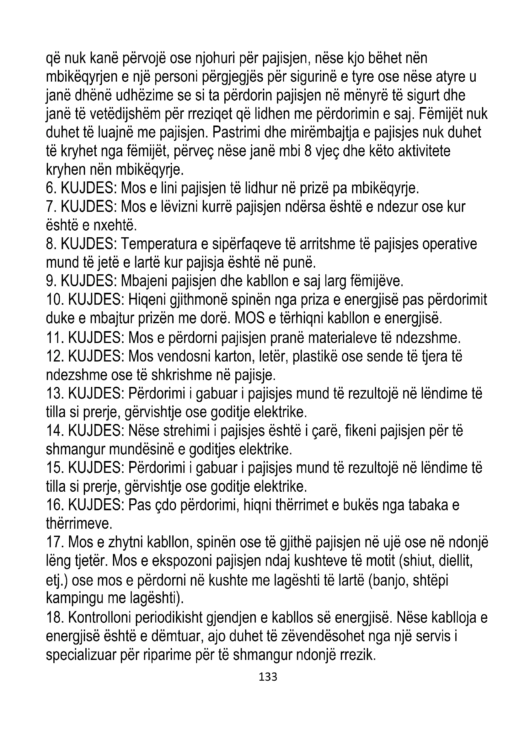 energjisë është e dëmtuar, ajo duhet të zëvendësohet nga një servis i specializuar për riparime për të shmangur ndonjë rrezik.134