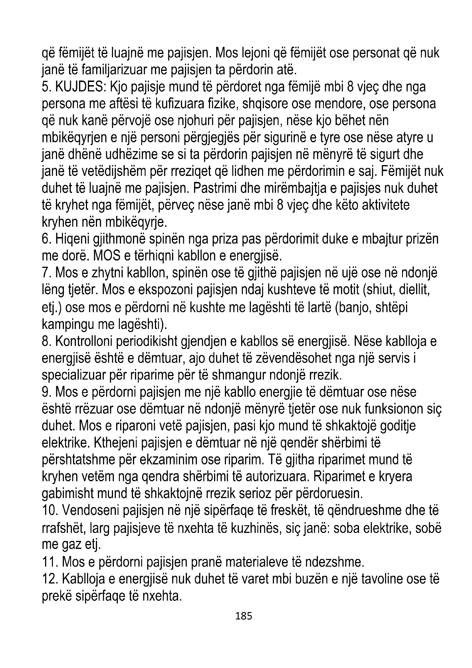 4. Kini kujdes të veçantë kur përdorni pajisjen kur ka fëmijë afër. Mos lejoni185