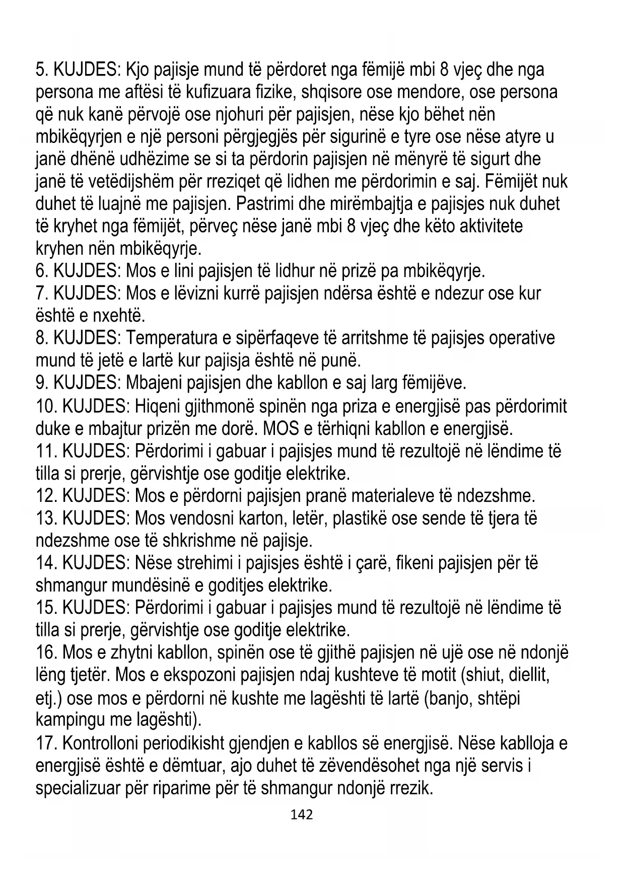 5. KUJDES: Kjo pajisje mund të përdoret nga fëmijë mbi 8 vjeç dhe nga