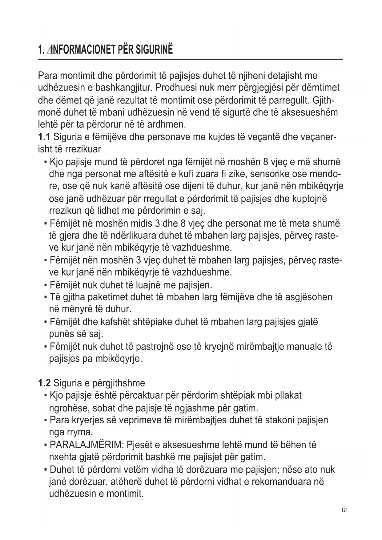 - Fëmijët nën moshën 3 vjeç duhet të mbahen larg pajisjes, përveç raste- ve kur janë nën mbikëqyrje të vazhdueshme.