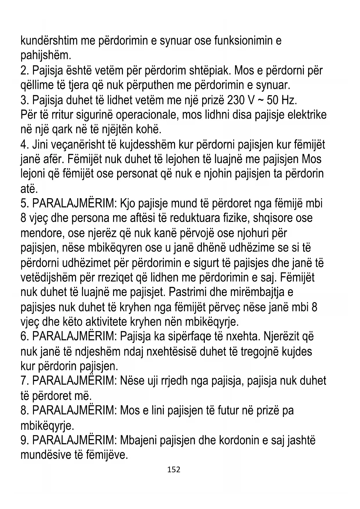 5. PARALAJMËRIM: Kjo pajisje mund të përdoret nga fëmijë mbi