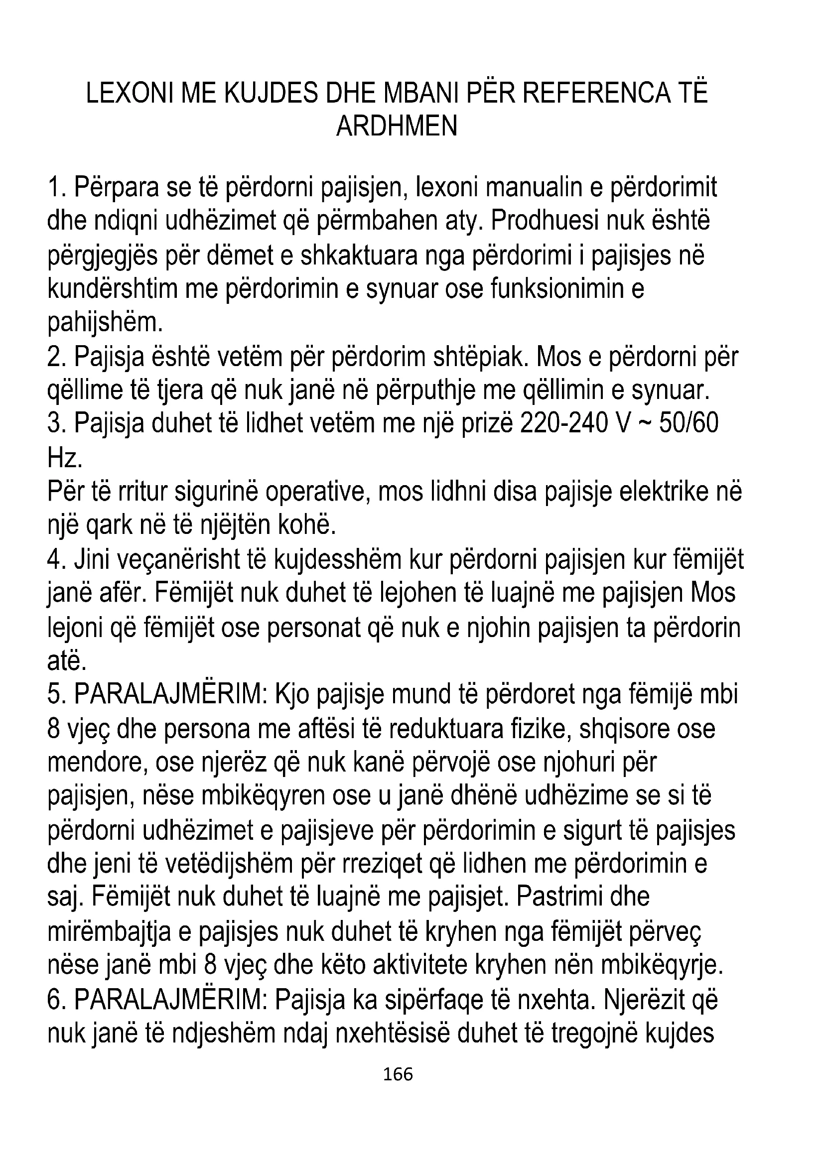 5. PARALAJMËRIM: Kjo pajisje mund të përdoret nga fëmijë mbi