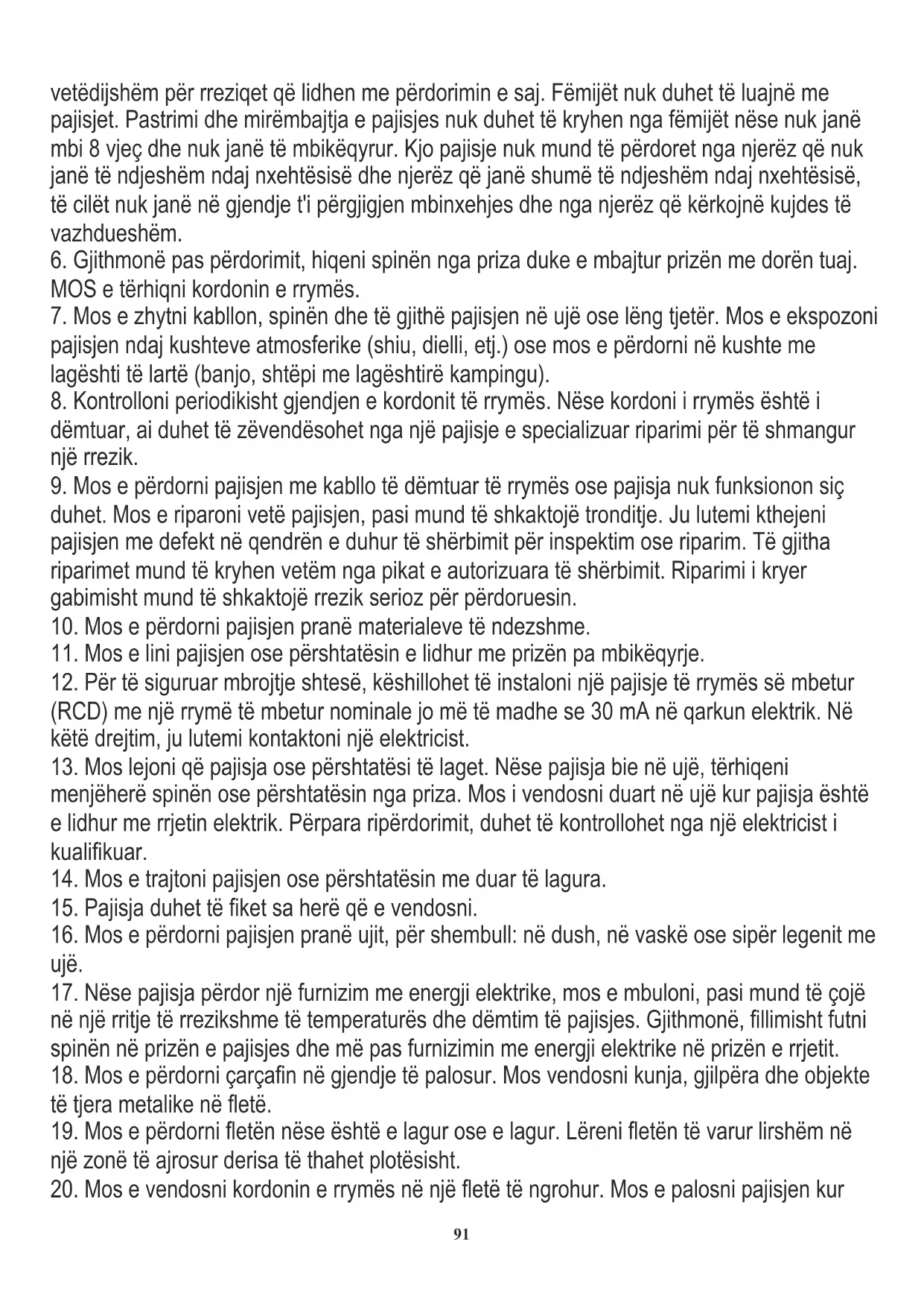 16. Mos e përdorni pajisjen pranë ujit, për shembull: në dush, në vaskë ose sipër legenit me