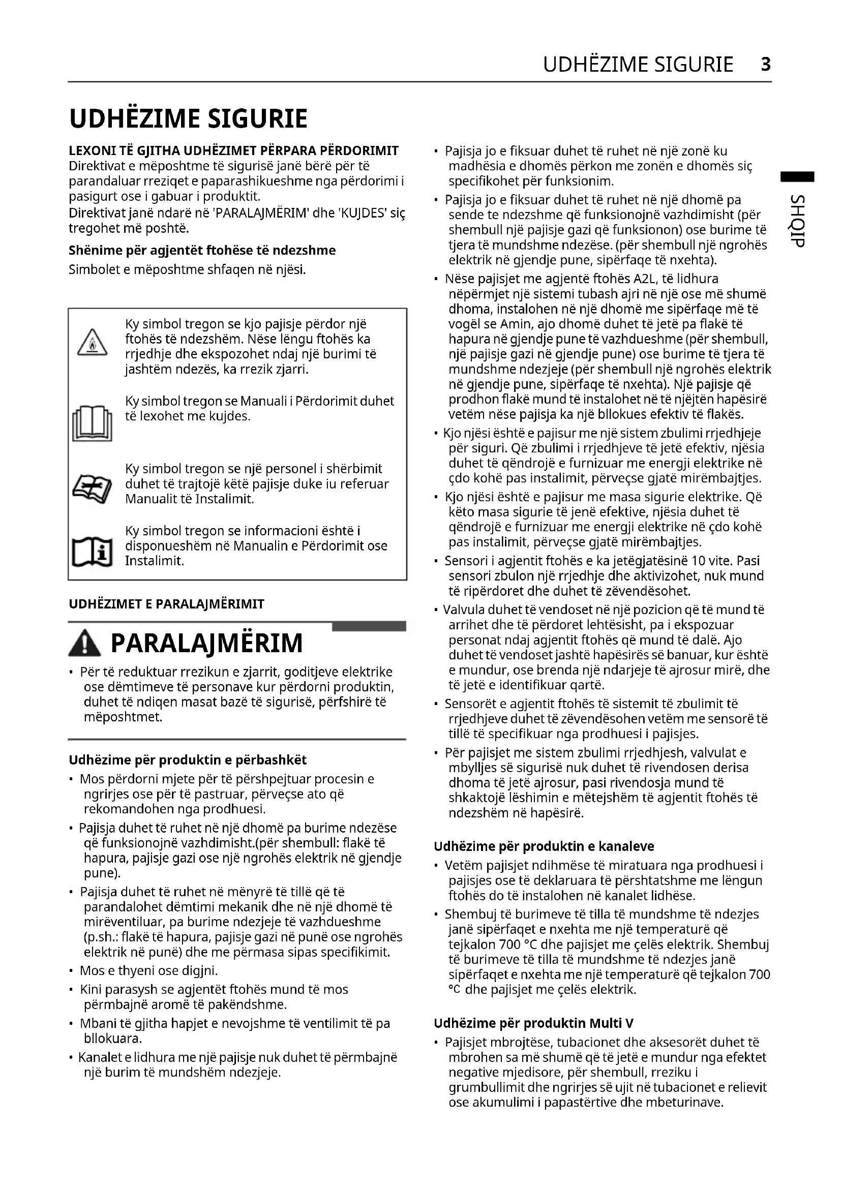 LEXONI TË GJITHA UDHËZIMET PËRPARA PËRDORIMIT ......................... 3 Shënime për agjentët ftohëse të ndezshme ....................................................3