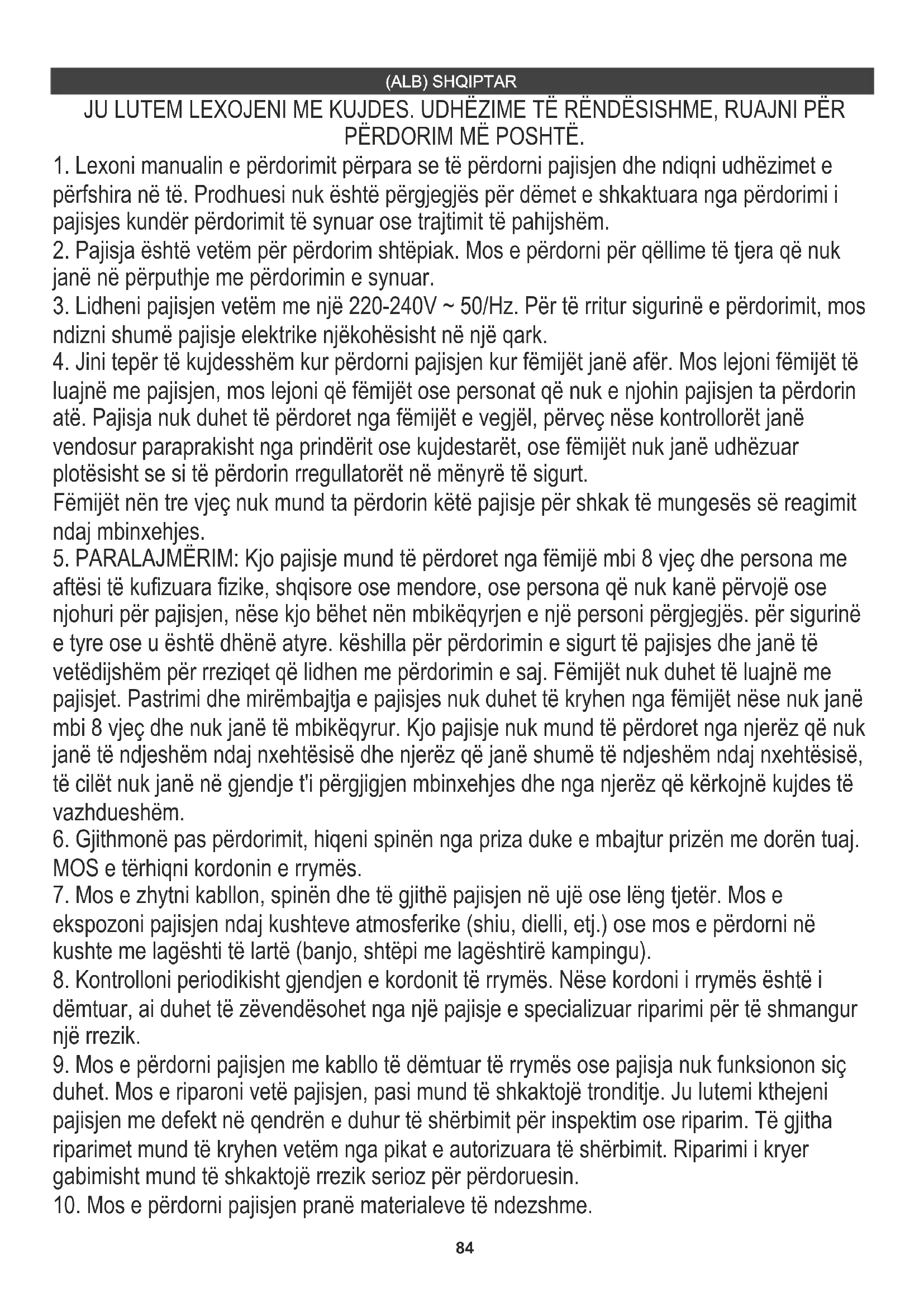 5. PARALAJMËRIM: Kjo pajisje mund të përdoret nga fëmijë mbi 8 vjeç dhe persona me