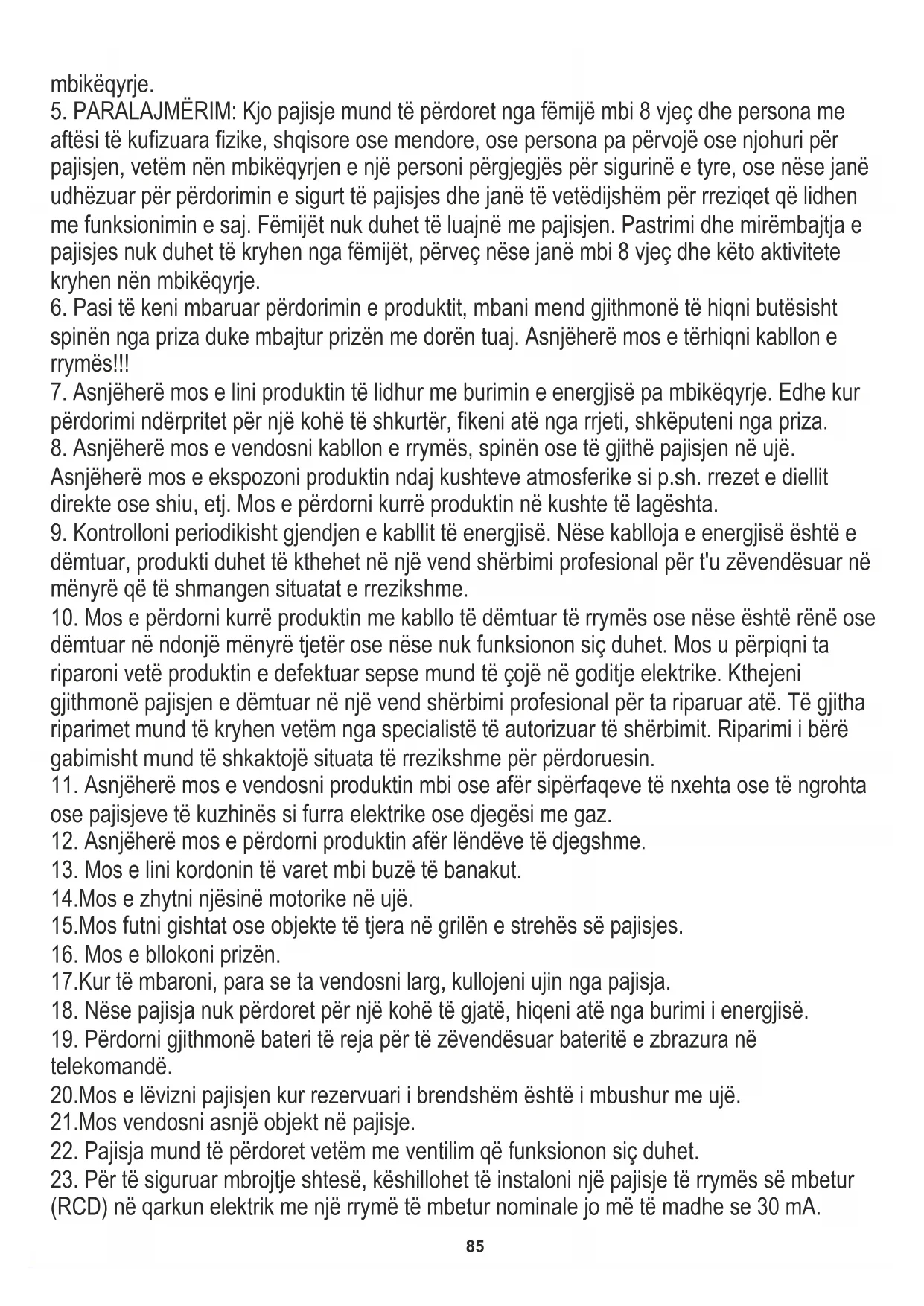 të lidhni disa pajisje në një prizë. 4.Ju lutemi të jeni të kujdesshëm kur përdorni rreth fëmijëve. Mos i lini fëmijët të luajnë me produktin. Mos lejoni që fëmijët ose njerëzit që nuk e njohin pajisjen ta përdorin pa85 mbikëqyrje.