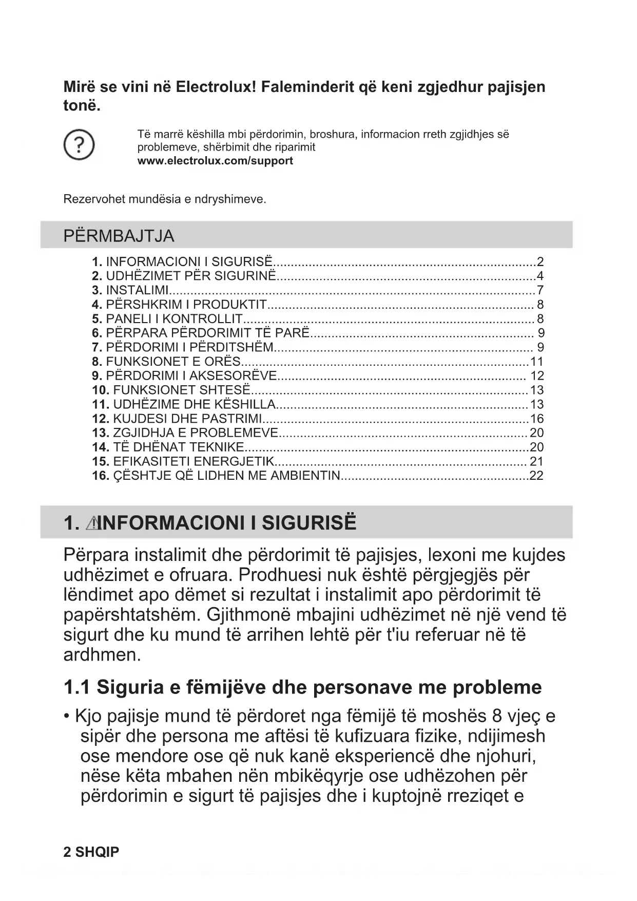 1.1 Siguria e fëmijëve dhe personave me probleme