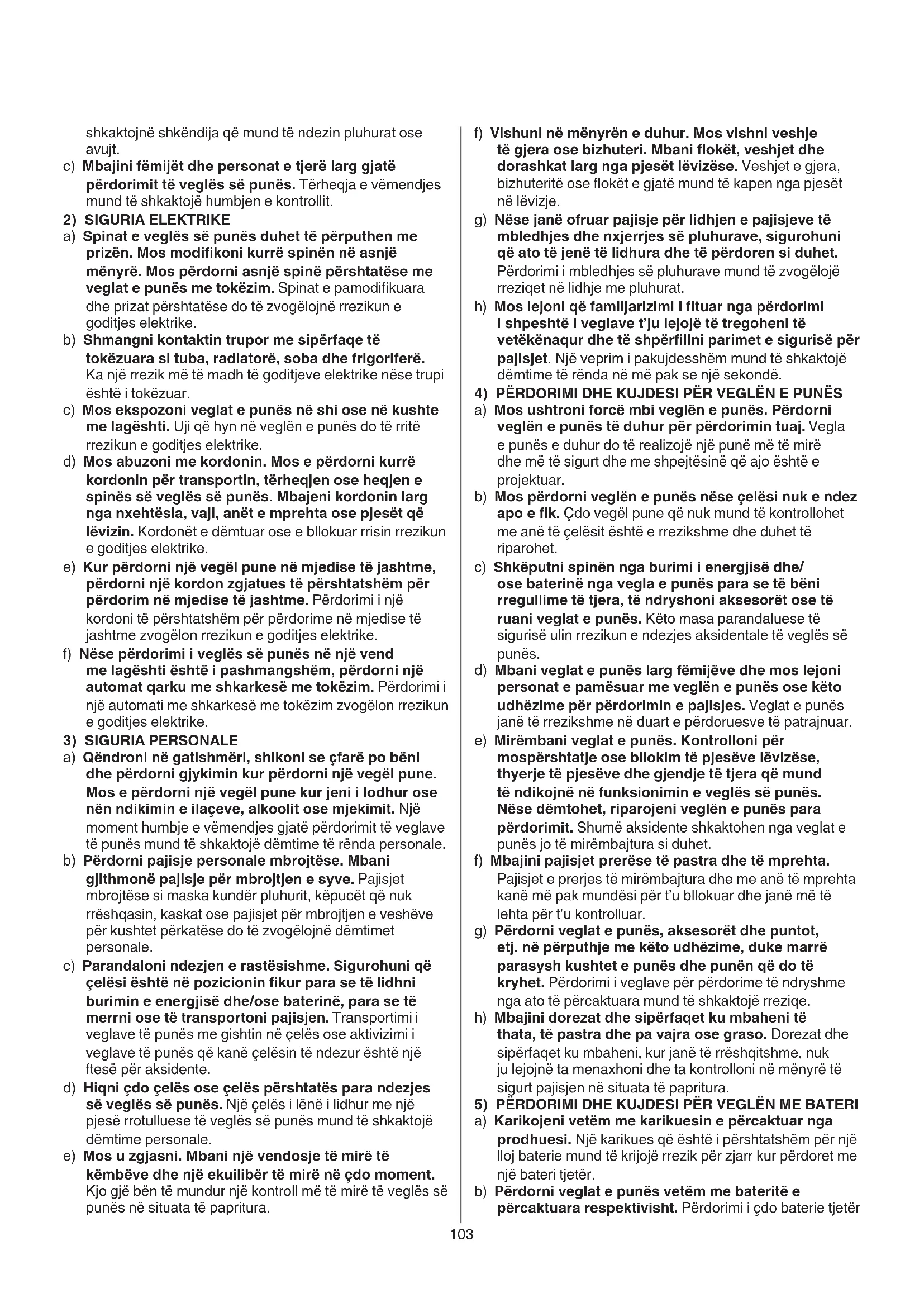 4) PËRDORIMI DHE KUJDESI PËR VEGLËN E PUNËS