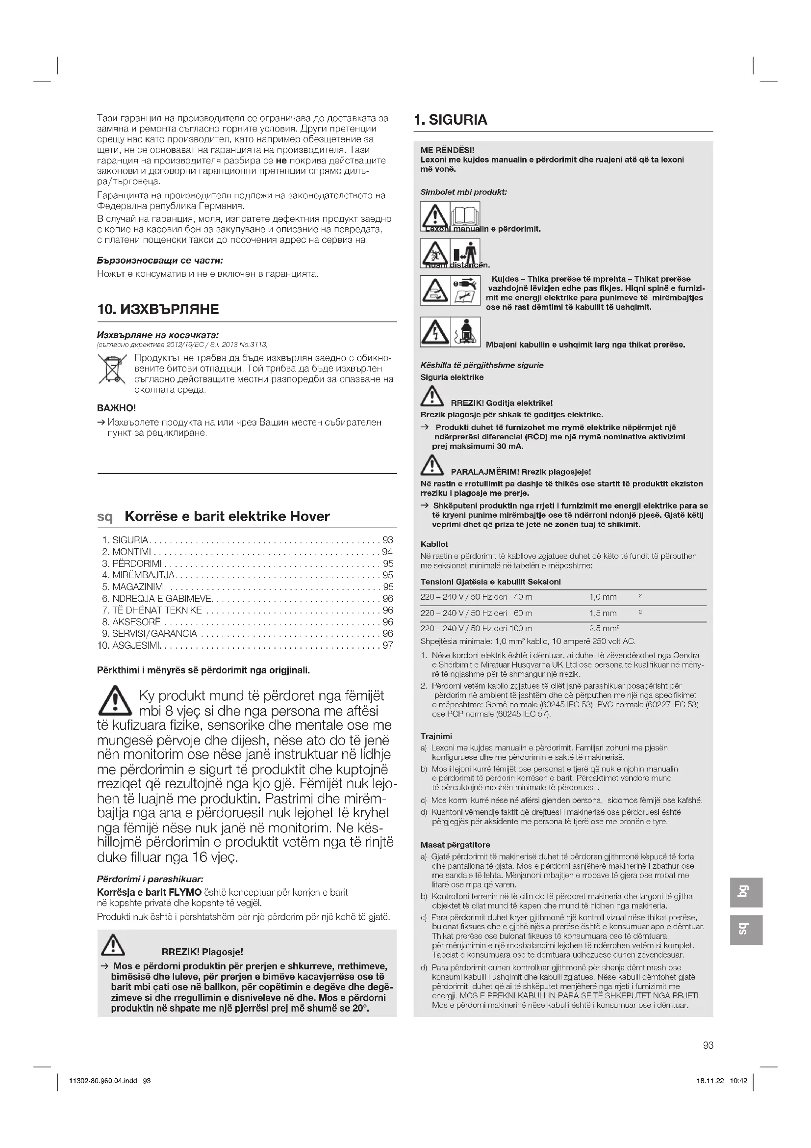 Servisi: Ju lutemi kontaktoni në adresë në pjesën e pasme. Deklarata e garancisë: Në rastin e një pretendimi për garanci, nuk keni detyrime financiare për shërbimet e përfituara. Për të gjithë produktet e reja origjinale FLYMO, Husqvarna UK Ltd. jep 2vjet garanci nga data e blerjes së parë nga tregtari, nëse produktet janë përdorur ekskluzivisht në sektorin privat. Kjo garanci e prodhuesit nuk vlen produkte të blera nga një treg dytësor. Kjo garanci ireferohet të gjitha defekteve kryesore të produktit, të cilat mund të provohen se janë shkak- tuar për shkak të gabimeve të materialit ose në fabrikim. Kjo garanci përmbushet duke ofruar një produkt zëvendësues tërësisht funksional ose duke riparuar produktin defektiv që na dërgohet falas; ne ruajmë të 11302-80.960.04.indd 9611302-80.960.04.indd 96 18.11.22 10:4218.11.22 10:4297