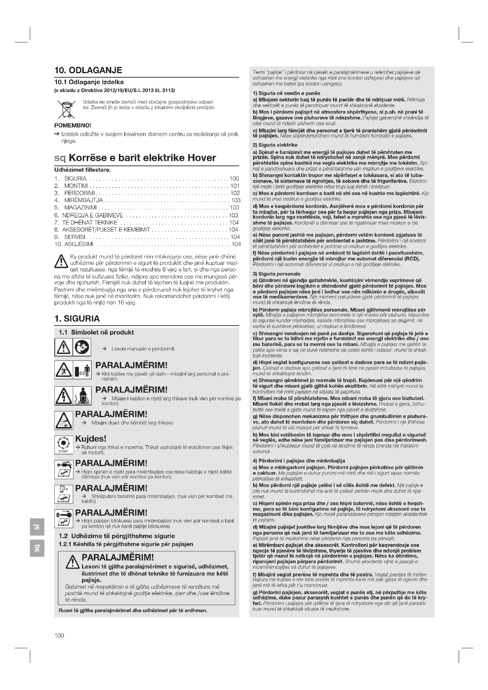 1.2.1 Keshilla te pergjithshme sigurie per pajisjen