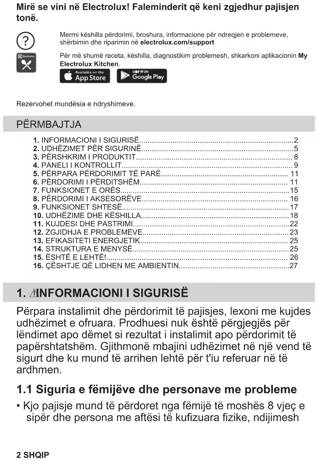 SL Navodila za uporabo | Mikrovalovna kombinirana pečica 355Mirë se vini në Electrolux! Faleminderit që keni zgjedhur pajisjen tonë. Merrni këshilla përdorimi, broshura, informacione për ndreqjen e problemeve,shërbimin dhe riparimin në electrolux.com/supportPër më shumë receta, këshilla, diagnostikim problemesh, shkarkoni aplikacionin MyElectrolux Kitchen.Rezervohet mundësia e ndryshimeve. PËRMBAJTJA