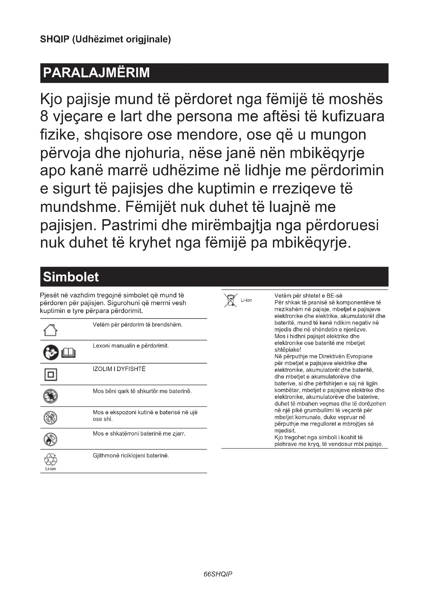 1. RUAJINI KËTO UDHËZIME – Ky manual