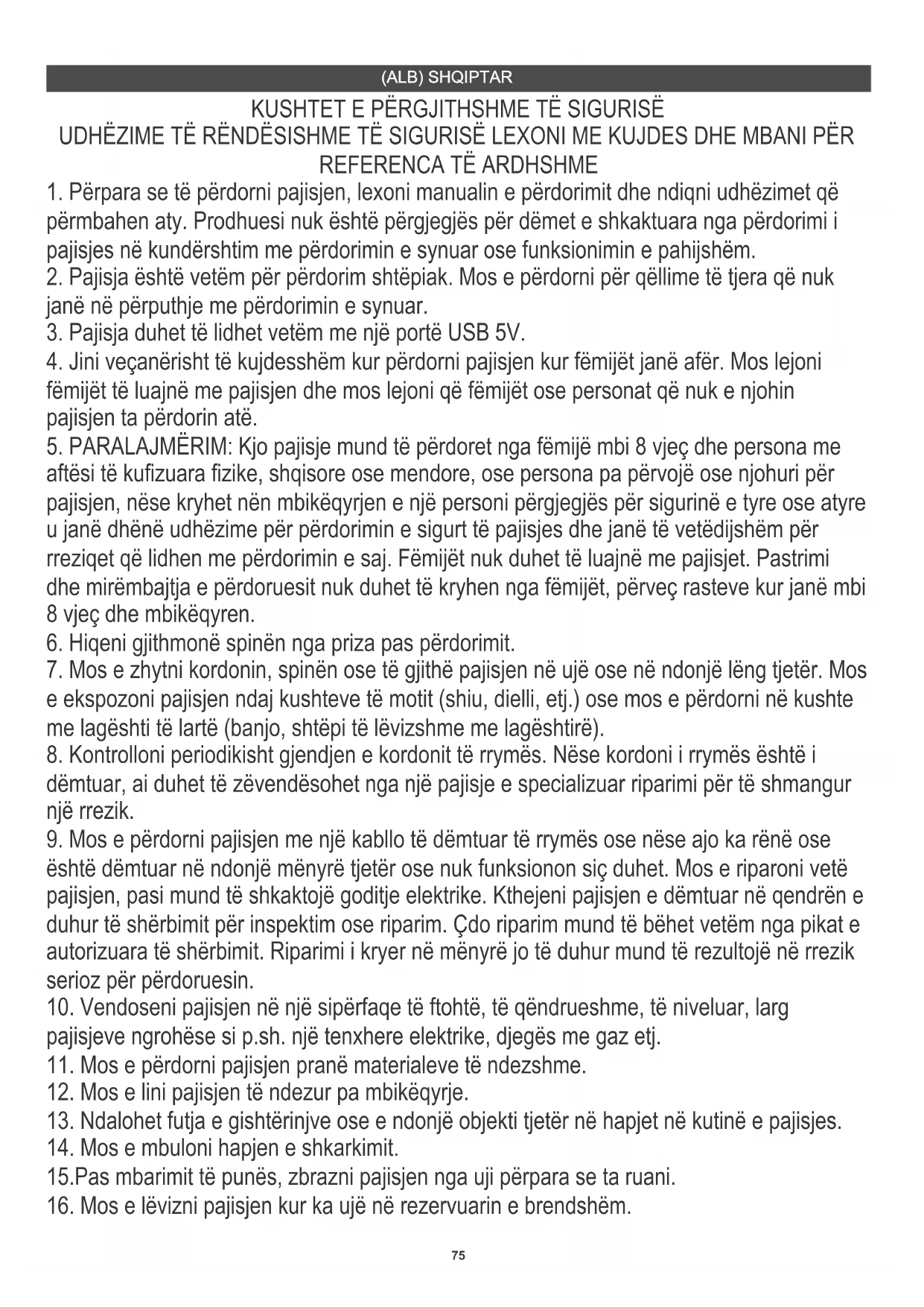5. PARALAJMËRIM: Kjo pajisje mund të përdoret nga fëmijë mbi 8 vjeç dhe persona me