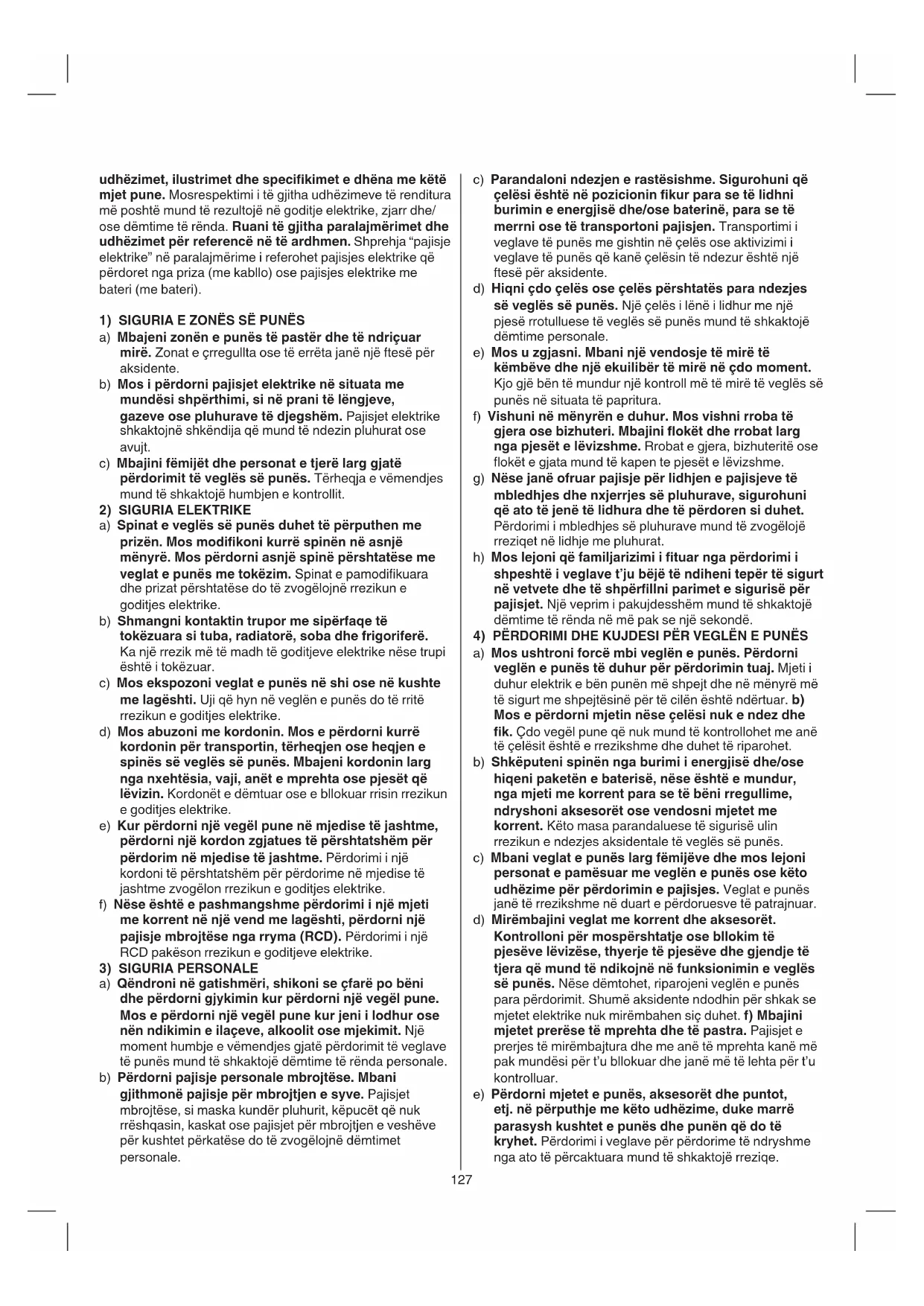 4) PËRDORIMI DHE KUJDESI PËR VEGLËN E PUNËS