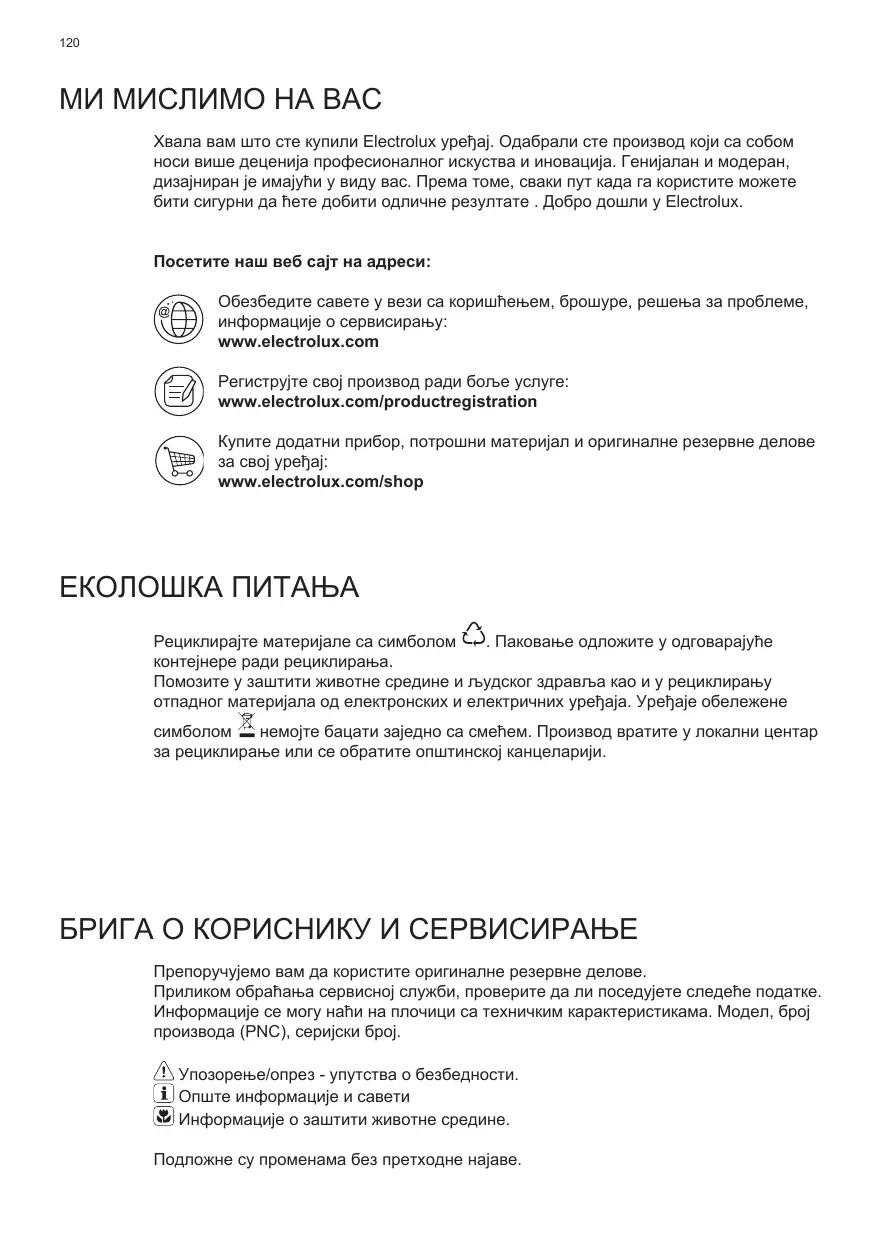 Avant de contacter le service, assurez-vous de disposer des informations suivantes : Vous trouverez ces informations sur la plaque signalétique. Modèle, PNC, numéro de série. Avertissement/Attention : consignes de sécurité. Informations générales et conseils. Informations en matière de protection de l’environnement. Sous réserve de modifications.