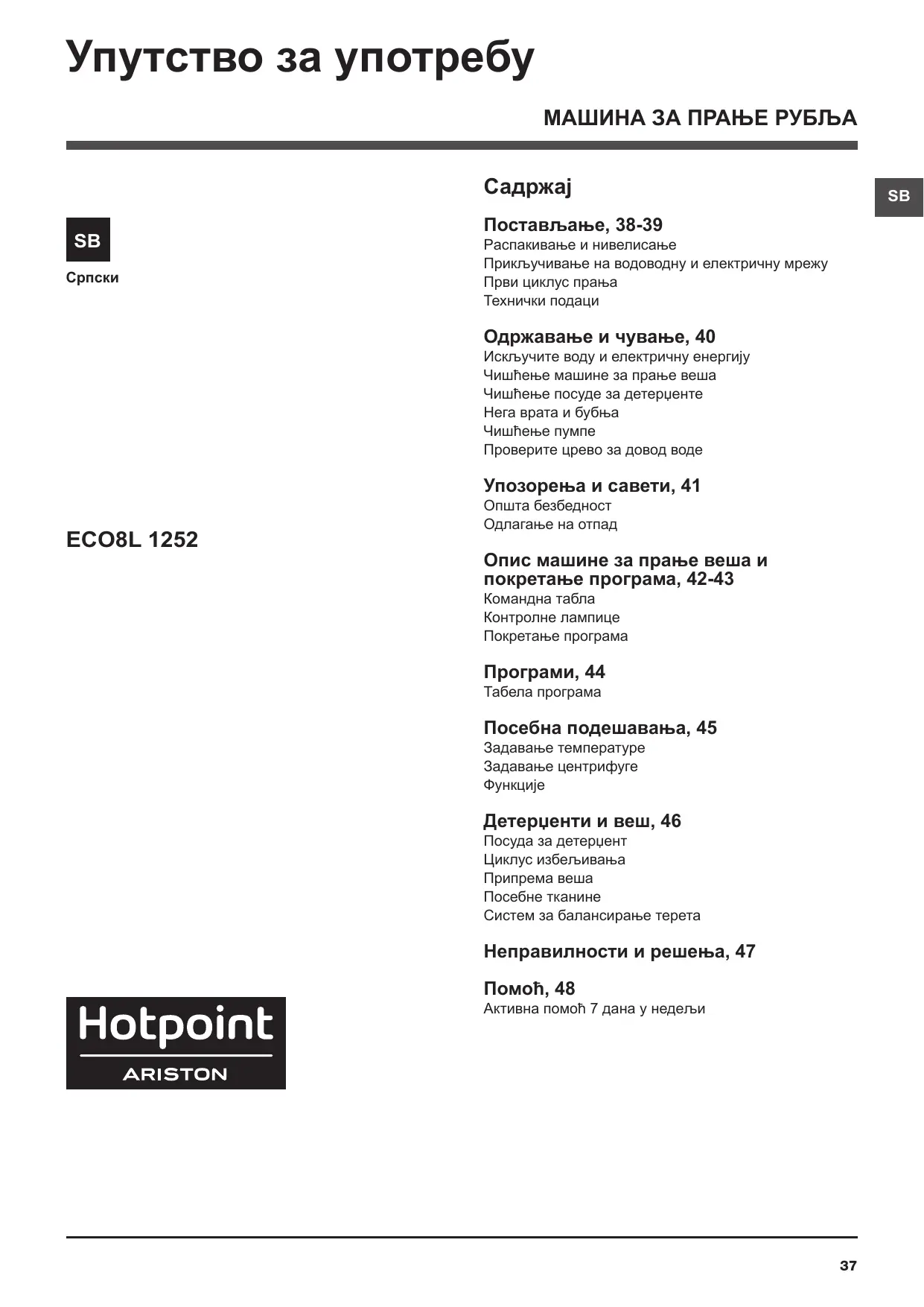Téléchargez la notice de votre перач машина au format PDF gratuitement ! Retrouvez votre notice ECO8L 1252 EU.M - HOTPOINT et reprennez votre appareil électronique en main. Sur cette page sont publiés tous les documents nécessaires à l'utilisation de votre appareil ECO8L 1252 EU.M de la marque HOTPOINT.
