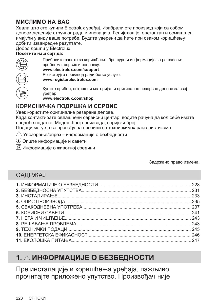 UPOZORENJE! Pogledajte poglavlja sa sigurnosnim uputama.