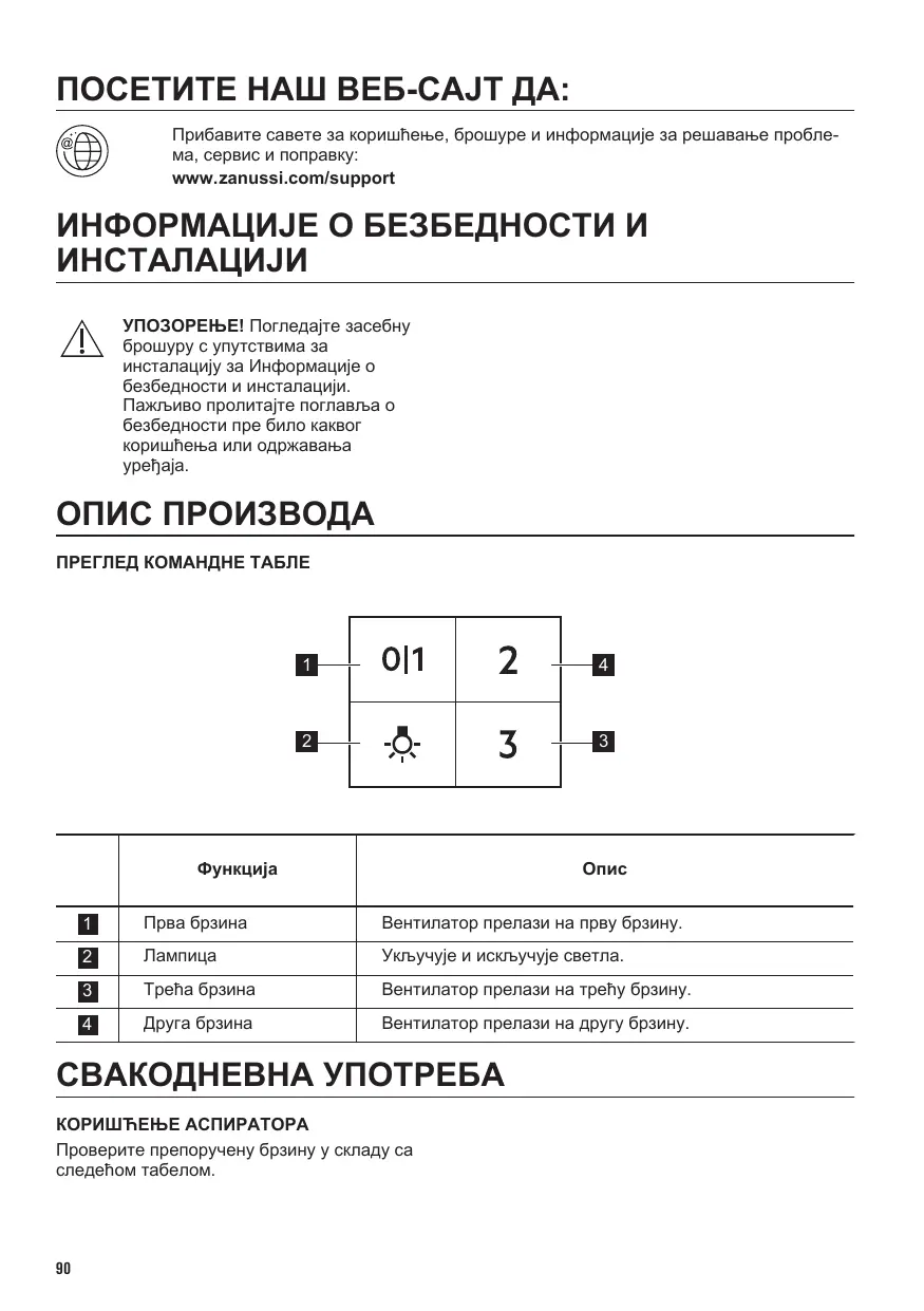 ПОСЕТИТЕ НАШ ВЕБ-САЈТ ДА: Прибавите савете за коришћење, брошуре и информације за решавање пробле‐ ма, сервис и поправку: www.zanussi.com/support