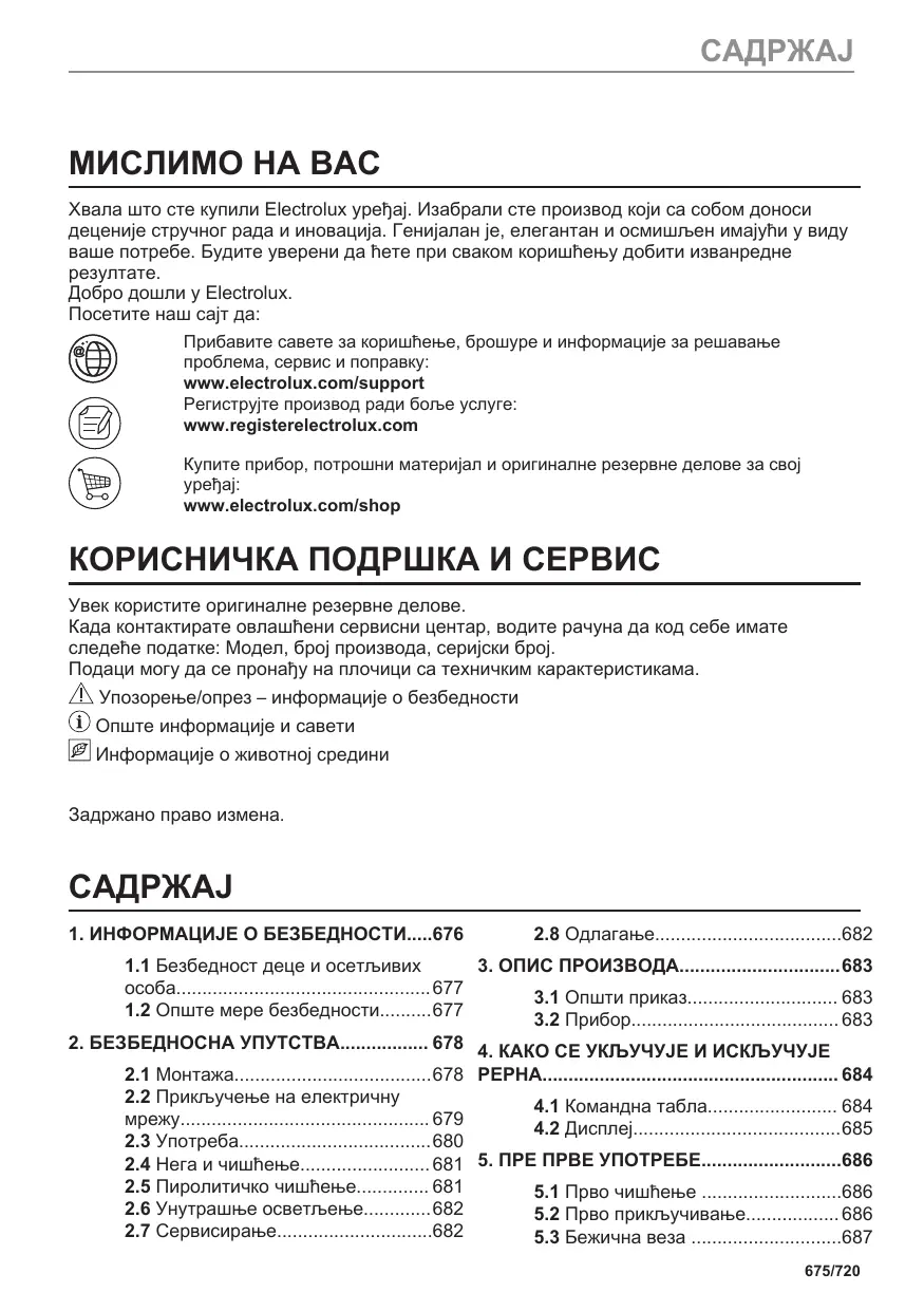 SADRŽAJ MISLIMO NA VAS Hvala vam na kupnji Electrolux uređaja. Odabrali ste proizvod koji u sebi uključuje desetljeća profesionalnog iskustva i inovacija. Genijalan i moderan, osmišljen prema vašim potrebama.