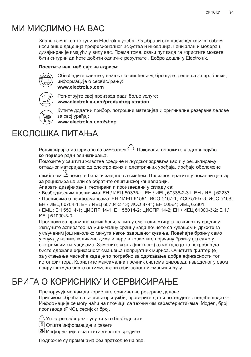 Téléchargez la notice de votre Кухињска нпа au format PDF gratuitement ! Retrouvez votre notice EFC90465OX - ELECTROLUX et reprennez votre appareil électronique en main. Sur cette page sont publiés tous les documents nécessaires à l'utilisation de votre appareil EFC90465OX de la marque ELECTROLUX.