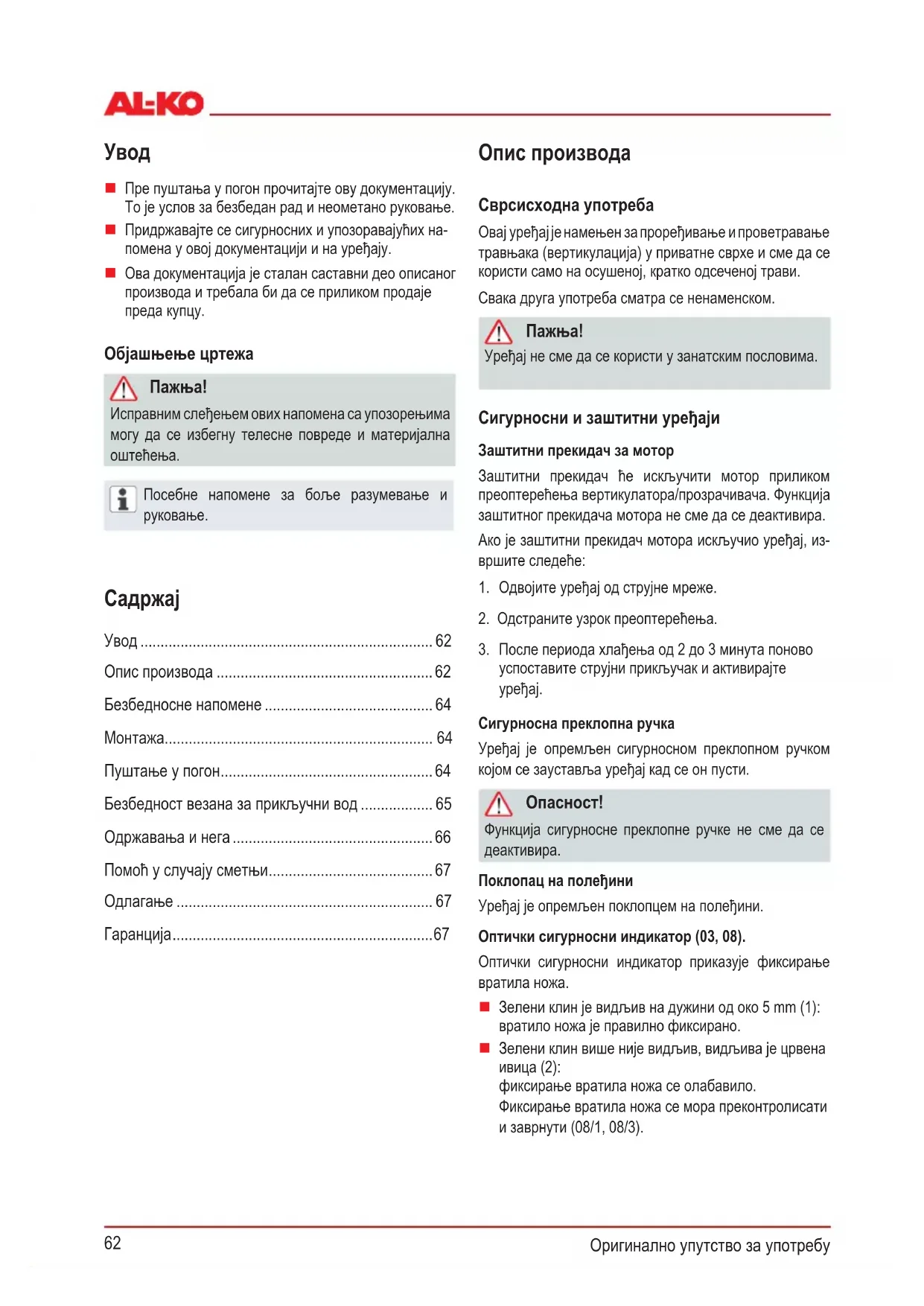 RS: Превод оригиналног упутства за рад62
